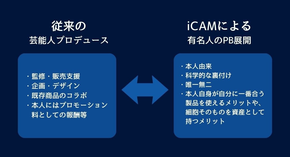 従来のビジネスが、既存の市場を前提に「いかに新しい商品やサービスを投入するか」を競ってきたのに対し、本構想が目指すのは、そうした枠組み自体を問い直すことにあります。ICEは、iPS細胞という人類が手にした新たな生命技術を、単なる研究成果や医療素材としてではなく、「個人に帰属し、時間とともに価値を拡張し得る資産」として再定義します。これはすなわちファンビジネスの再定義を意味します。従来の芸能人の枠を超えて「語られる価値を持つ細胞の提供者」がiCAM構想における「新時代の有名人」になるのです。