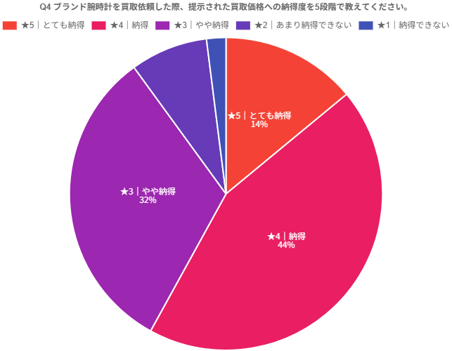 この結果から、腕時計買取においては、査定額そのものに加えて「その価格をどう受け止めたか」という納得感が、全体の満足度を大きく左右していることがうかがえます。