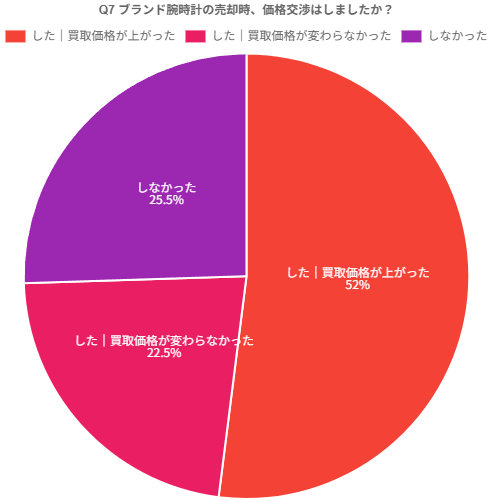 この結果から、腕時計買取においては、価格交渉が一定程度機能しており、実際に査定額が上がるケースも少なくないことが分かります。