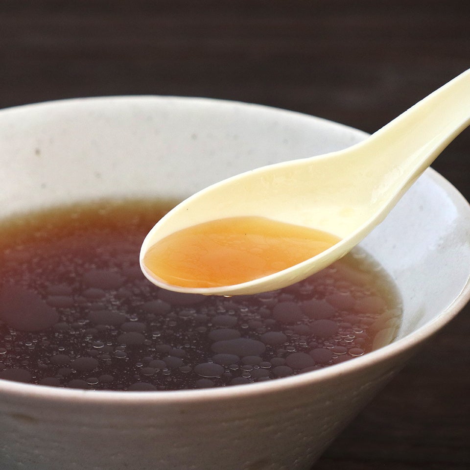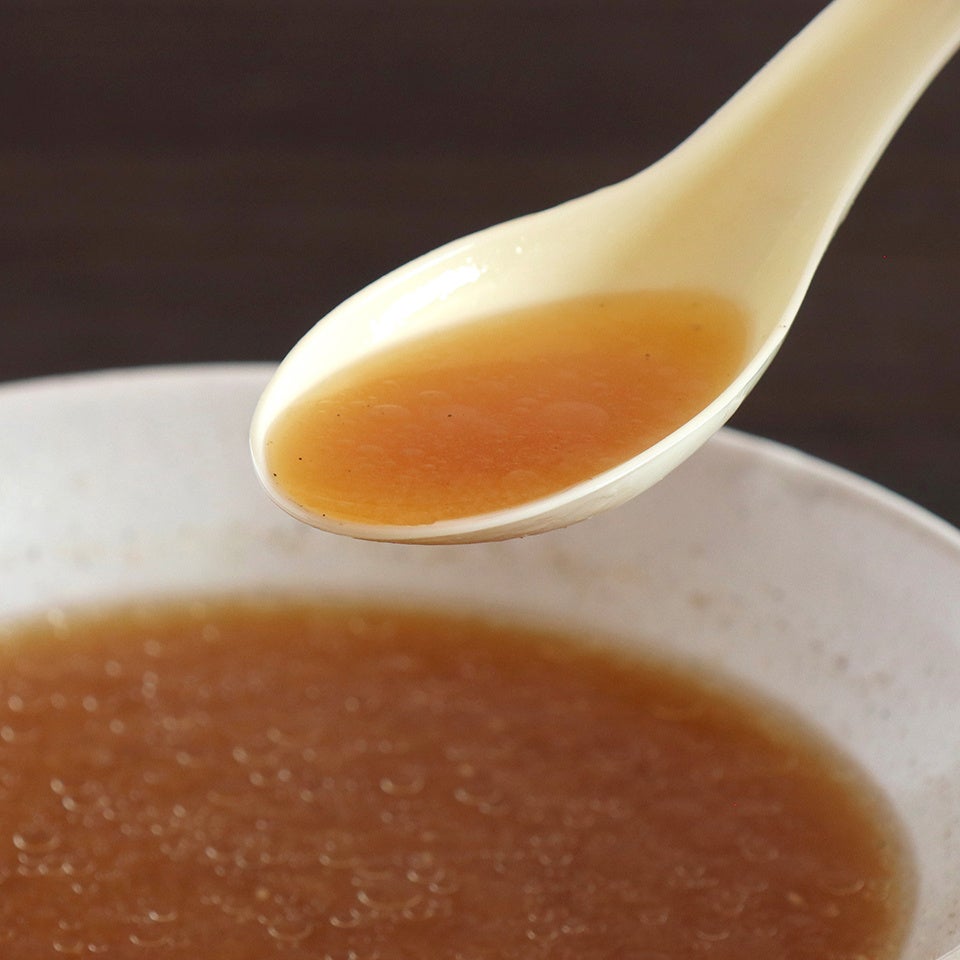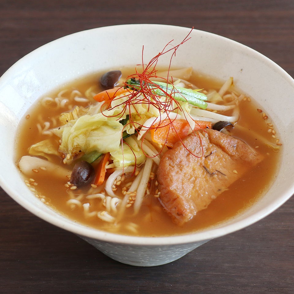 スープは、国産有機の醤油や味噌を活かし、にんにくエキス、昆布粉末などの植物性原料だけを使用して醤油、味噌の自然の風味を活かしつつコクのあるスープに仕上げております。何度試作を重ね、動物性のだしを使わずに満足感の高いスープに仕上げました。ヴィーガンの方にも召し上がりいただけます。香料、着色料、乳化剤、酸化防止剤は使っておりません。