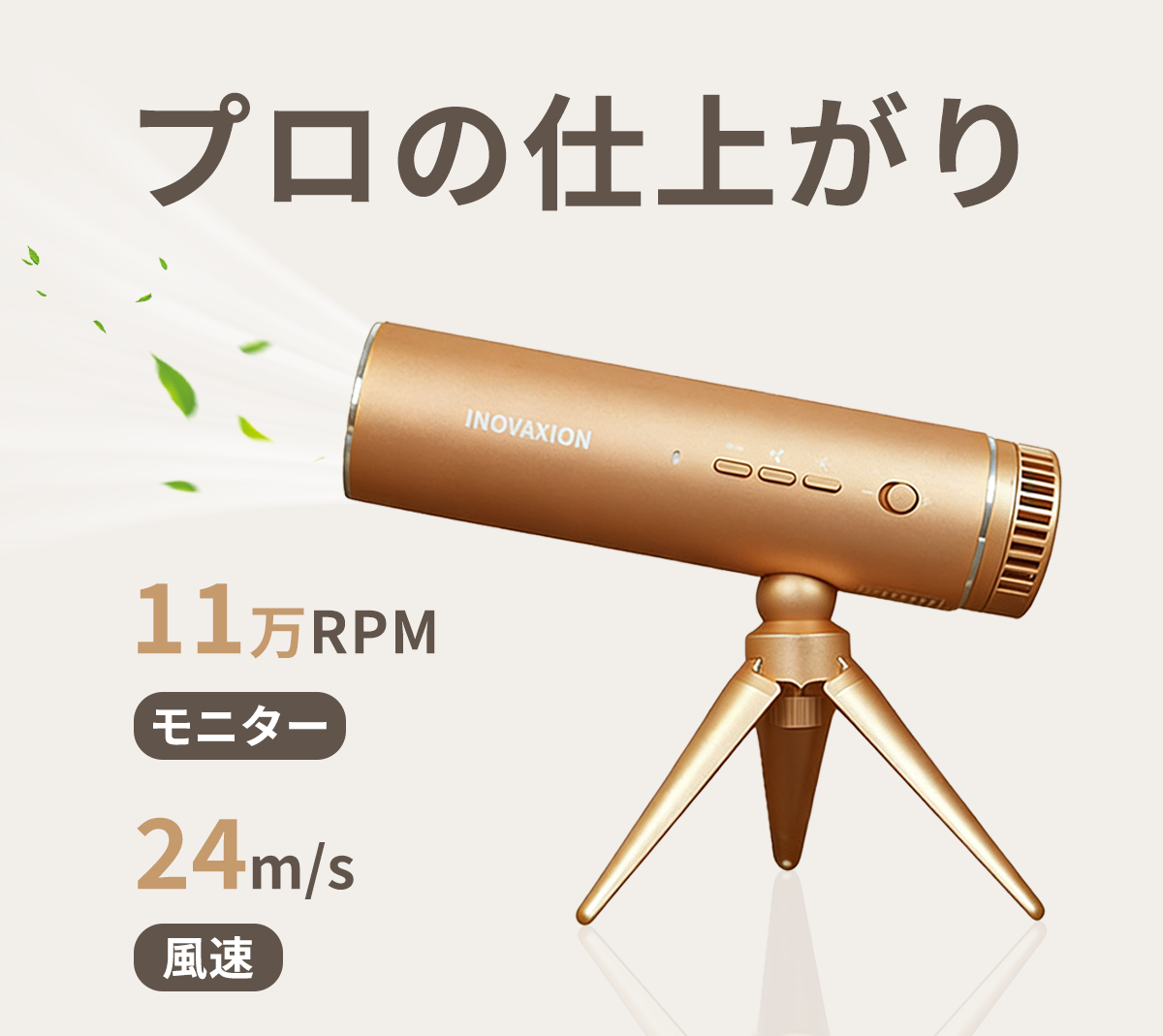 11万回転高速モーターが生み出す強く集中した風で、髪の根元から素早く水分を飛ばします。従来よりも格段に短い時間でサラリと乾かすことができ、髪への熱ダメージを軽減します。