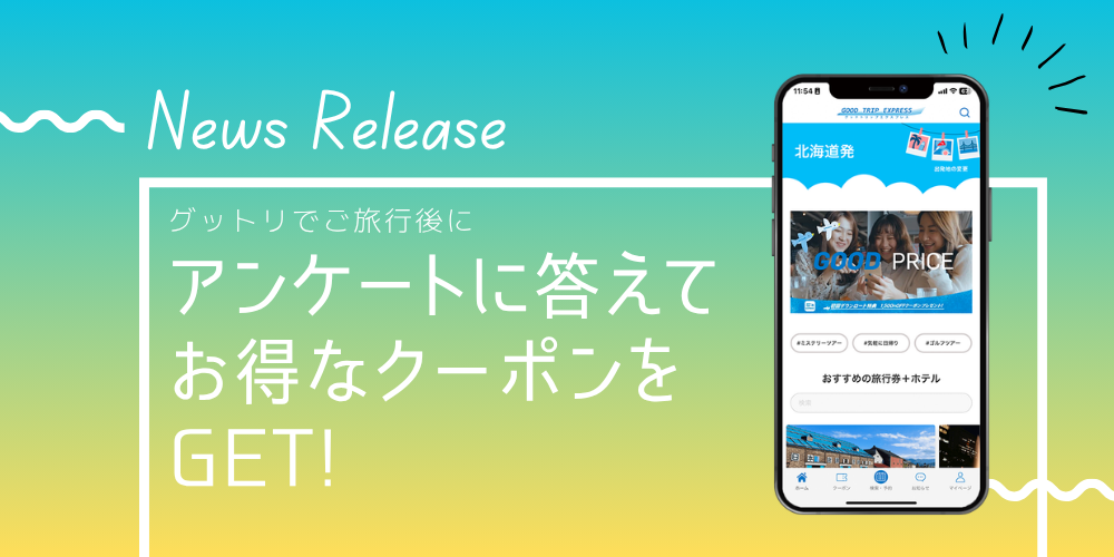 日本空輸株式会社(本社:東京都港区、代表取締役:岡下 敏也)が運営する旅行予約サイト『グッドトリップエクスプレス(グットリ)』は、2026年4月9日より、当社販売商品をご利用のお客さまへアンケートを実施、ご回答いただいたの方全員へ次回ツアー商品に使用可能なクーポンを配布するキャンペーンを開始いたしました。顧客フィードバックを即座に商品開発へ反映するサービス体制を強化いたします。