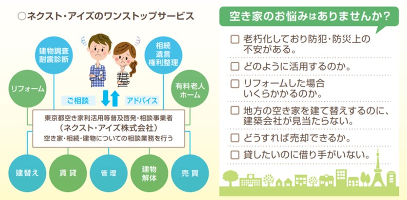 ネクスト・アイズ株式会社(https://www.nexteyes.co.jp/、所在地:東京都港区、代表取締役:小野 信一、以下 ネクスト・アイズ)は、東京都が推進する空き家に係る普及啓発の取組と空き家所有者等及び空き家活用希望者からの相談に無料で応じるワンストップ相談業務を一体的に実施する事業者として決定した。