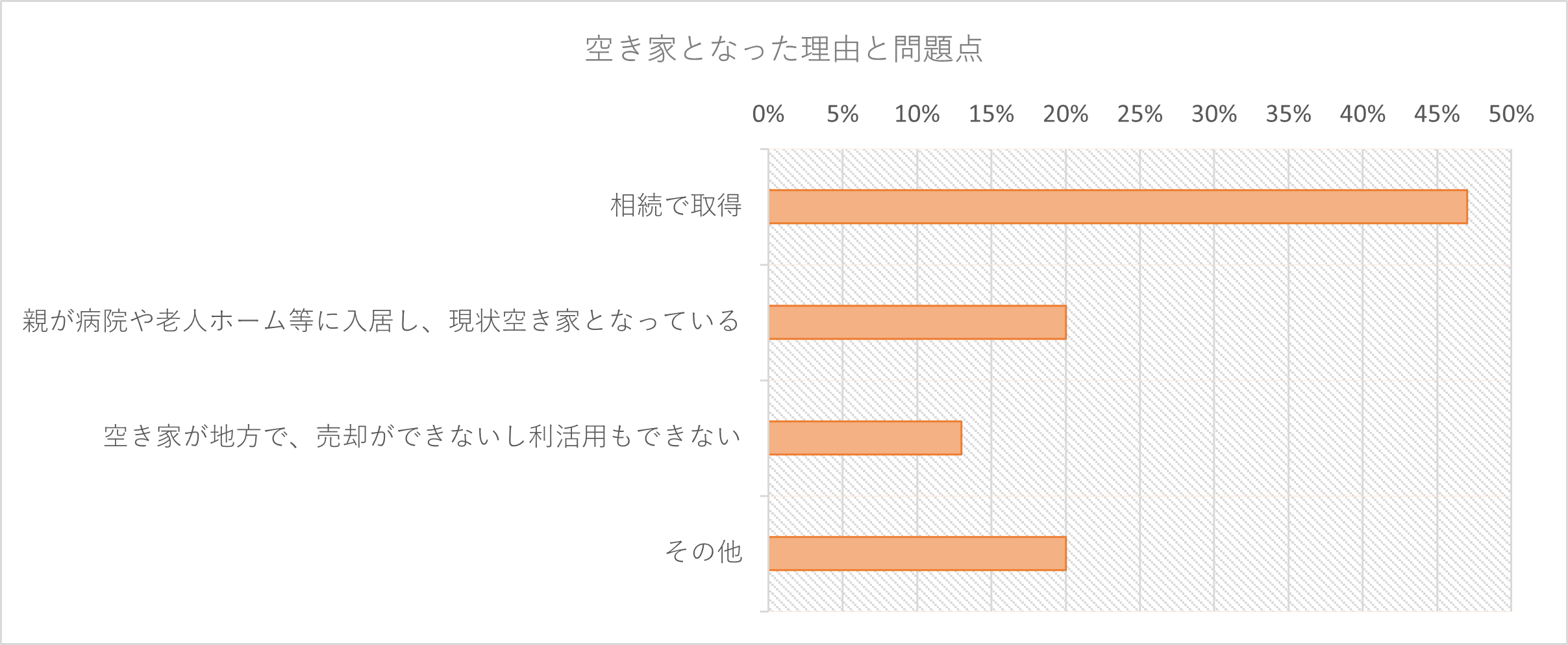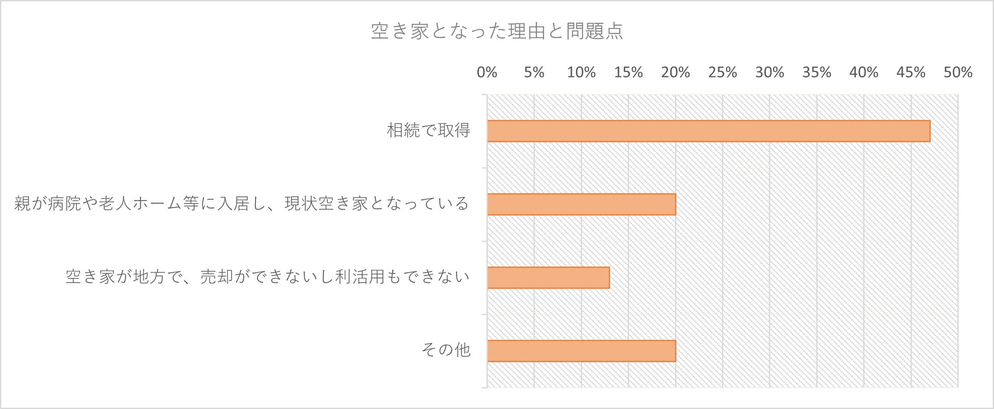 セミナー・イベントの参加者や個別相談者の年齢層としては、50代が18%、60代38%、70代26%となっており、50代~70代が半数を超えた。セミナー・イベントの参加者にアンケートを実施したところ、現在空き家になった理由としての1位は「相続で取得」、2位は「親が病院や老人ホーム等に入居し、現在空き家となっている」、3位は「空き家が地方で、売却ができないし利活用もできない」という結果になった。