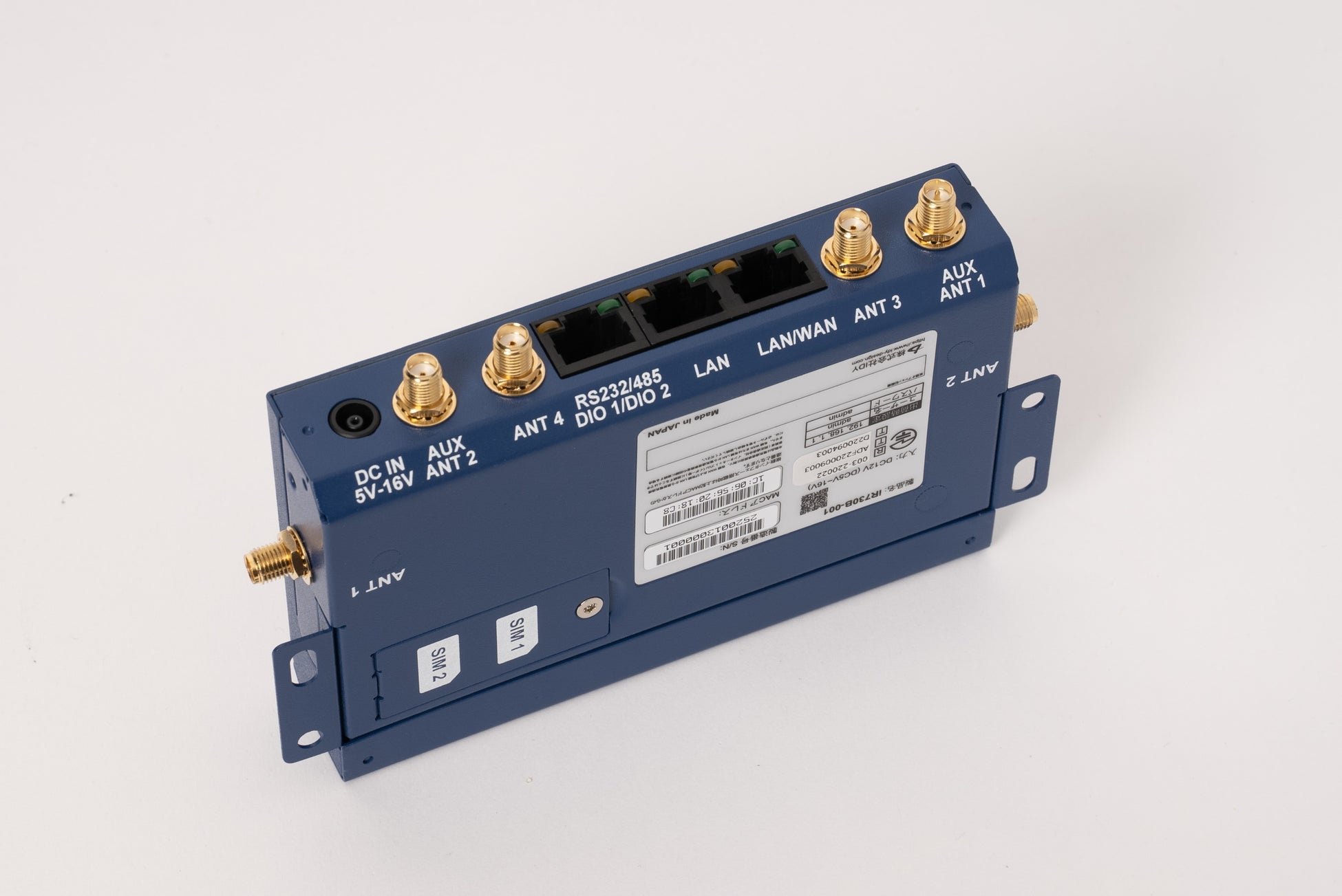 ・LAN(WAN共用含)×2、RS232/485x1、DIO×2、モードSW、リセットスイッチ、nano SIMスロット×3