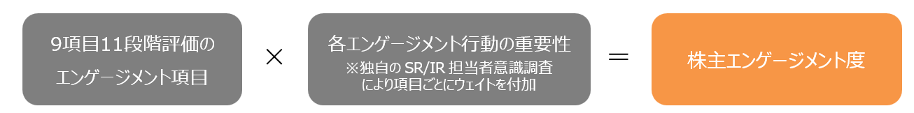 本サービス開発にあたり当社が調査を行った結果、株主のエンゲージメント行動と企業への満足度には強い関連性があることが分かりました。本サービスでは調査をもとに当社が開発した独自指標「株主エンゲージメント度」により、個人株主の行動・意向を可視化し、上場会社に対する満足度との相関を分析します。