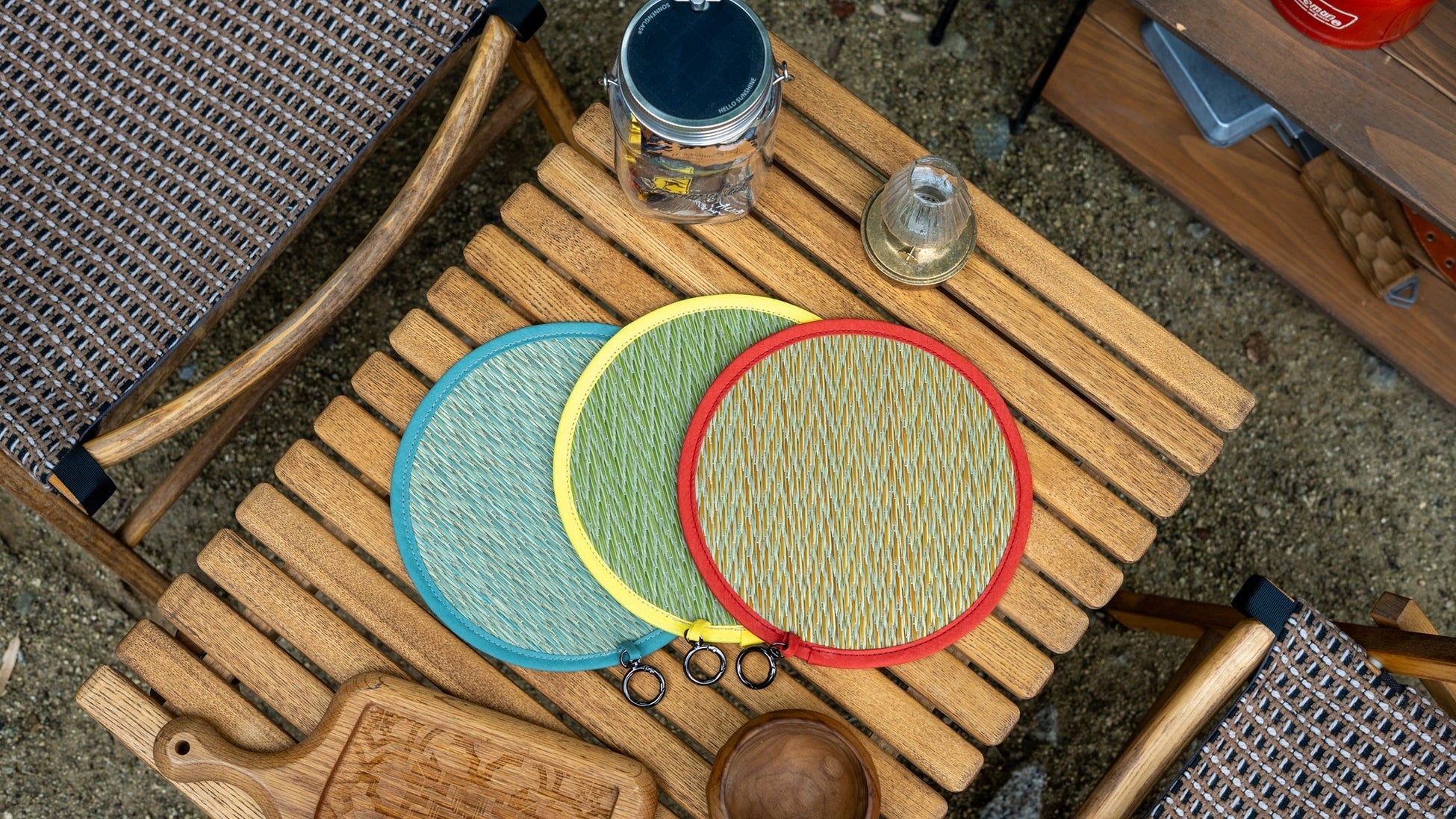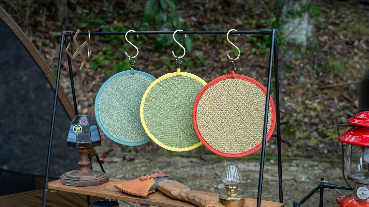自然の中で過ごす時間をもっと豊かにしたいという想いから、「暮らしに溶け込むアウトドアギア」をテーマに、今回のコラボうちわが誕生しました。素材には希少な九州産のい草を使用し、「今の暮らしに馴染む」デザインはもちろん、手触りや扇ぎやすさまでこだわりました。キャンプやピクニックはもちろん、おうち時間やインテリアとしても大活躍。心地よい自然の恵みを、ぜひあなたの暮らしにも取り入れてみてください。
