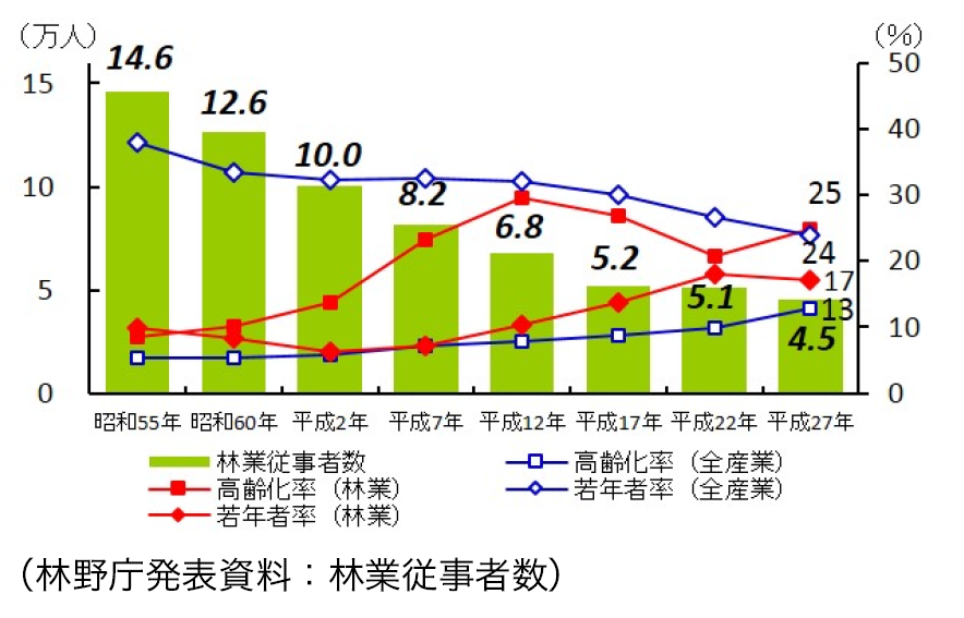 地球環境を保全していく上で⽋かせない林業従事者が、近年⼤幅に減少しています。当社では薪