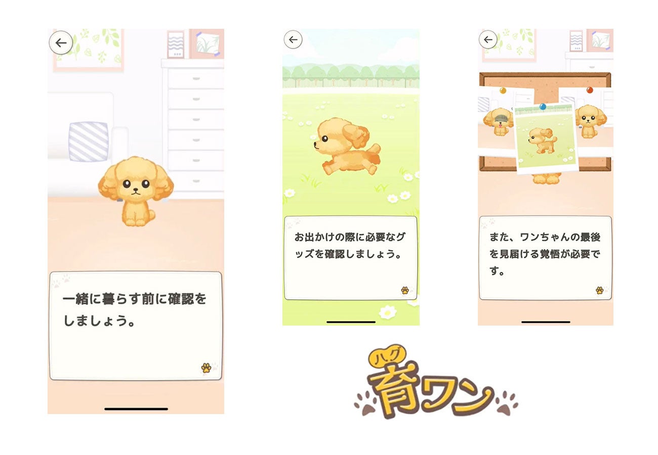 アプリ内ではワンちゃんの飼育を始める前の心構えや、信頼できるペットショップの選び方、お迎え後の具体的なお世話の仕方を体験可能で、これから新しい家族と新しい暮らしを始めるにあたって必要となることを学べます。