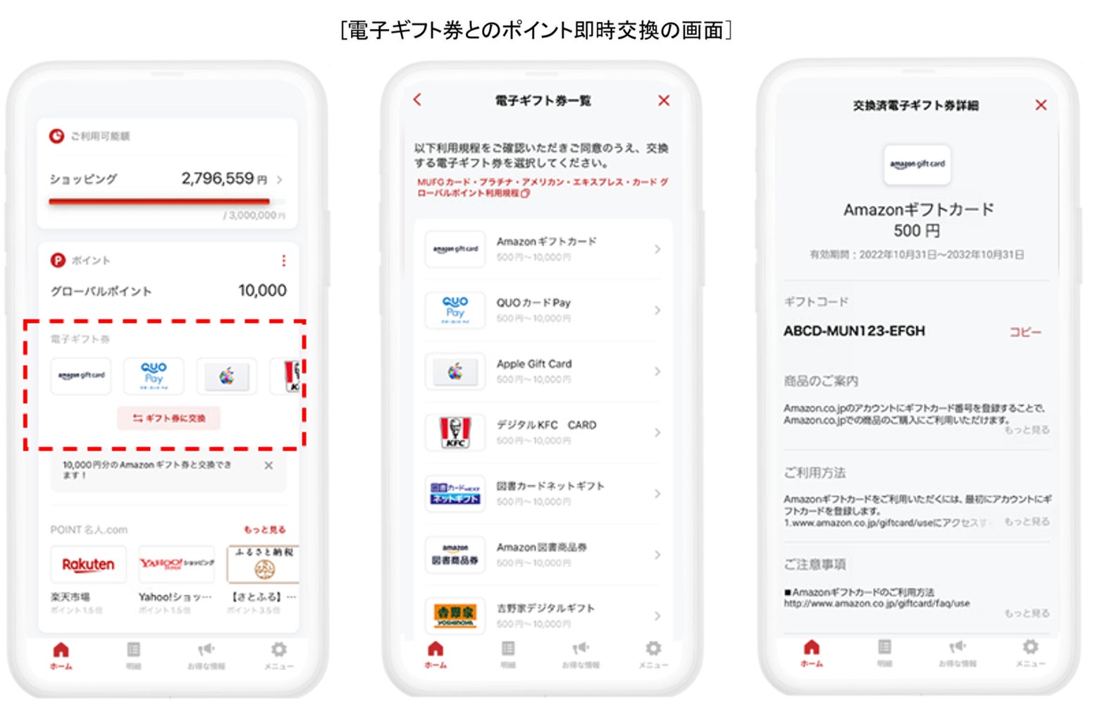 貯まったポイントを「Amazonギフトカード」など18種類の 電子ギフト券と交換できる「ポイント即時交換機能」を新設