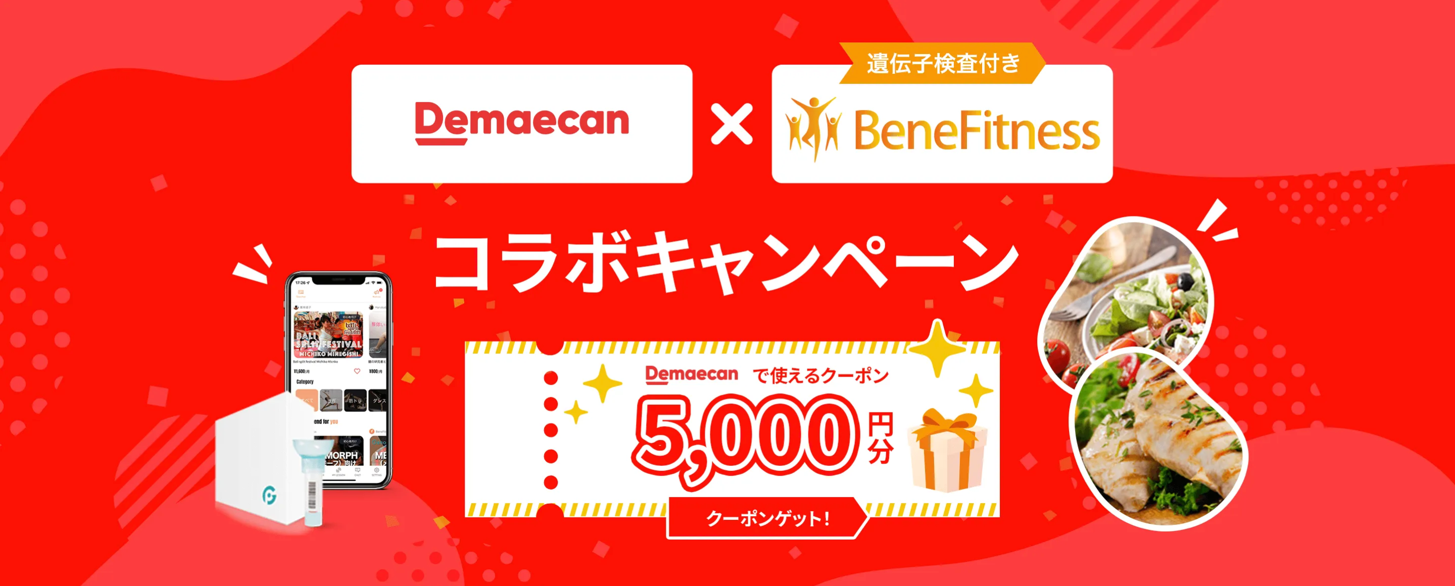 日本最大級のデリバリーサービス「出前館」と遺伝子検査付き「BeneFitness」がコラボキャンペーンを開催決定。