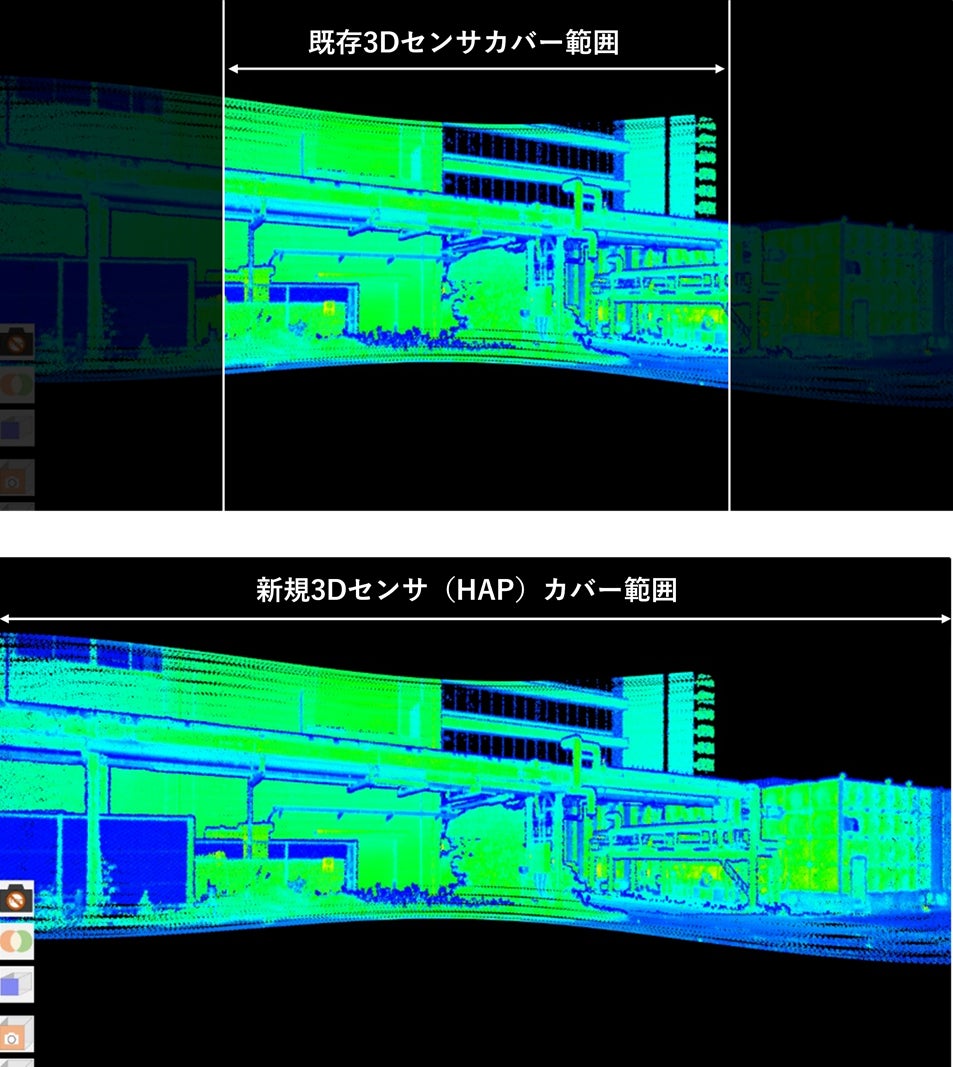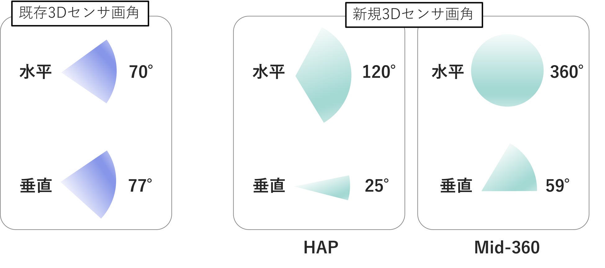 今回新たに、画角や点群密度が異なるLivox社製の2種類の新型センサ「HAP」と「Mid-360」に対応しました。画角の広い新型3Dセンサに対応することにより、1回の撮影で幅広い範囲をカバーすることができるため撮影回数を減らすことができ、作業時間の短縮に貢献します。