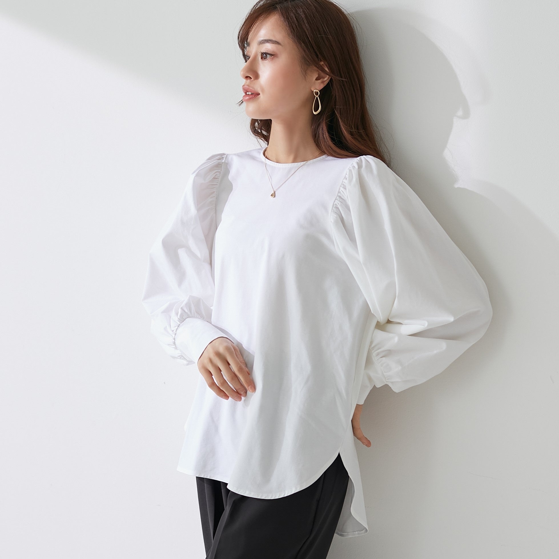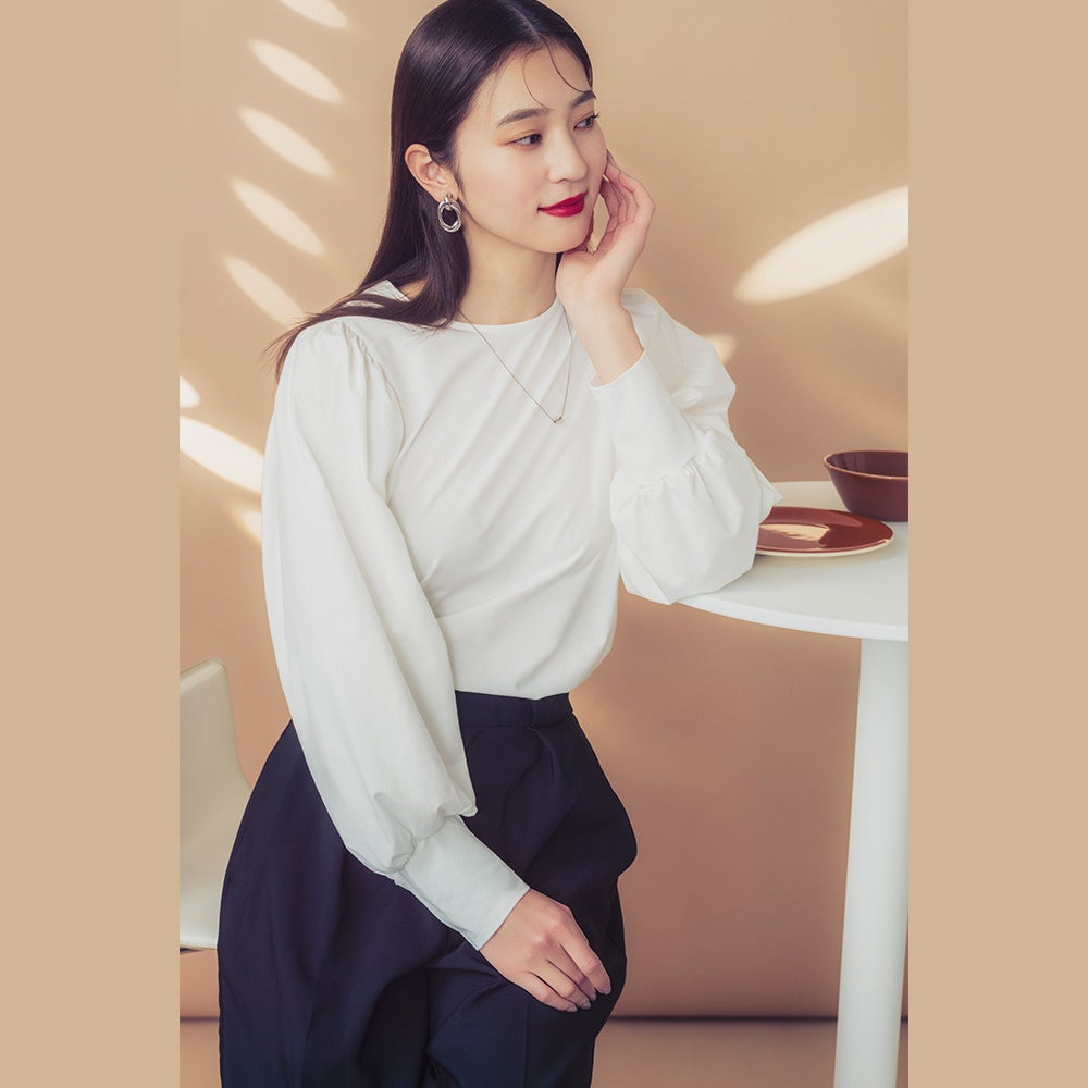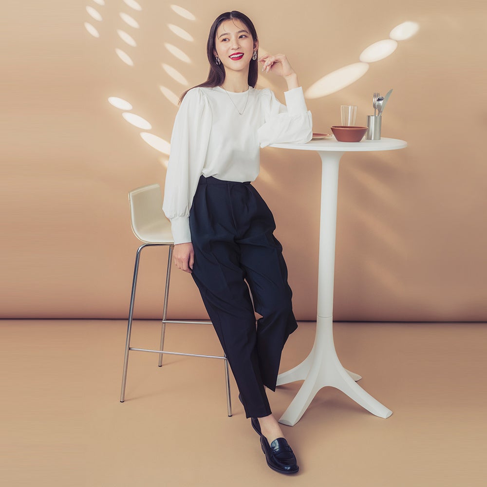 女性の着こなしでは、ジャケットインでも1枚でも着映えるブラウスがおすすめ。オフィスで活躍することだけでなく、アイテムによっては休日のカジュアルダウンな着こなしにも活用可能。ベーシックな色合いだが、ギャザーやレース使い、ボウタイなど程よくこなれ感のあるデザインブラウスがセンスUPの鍵。