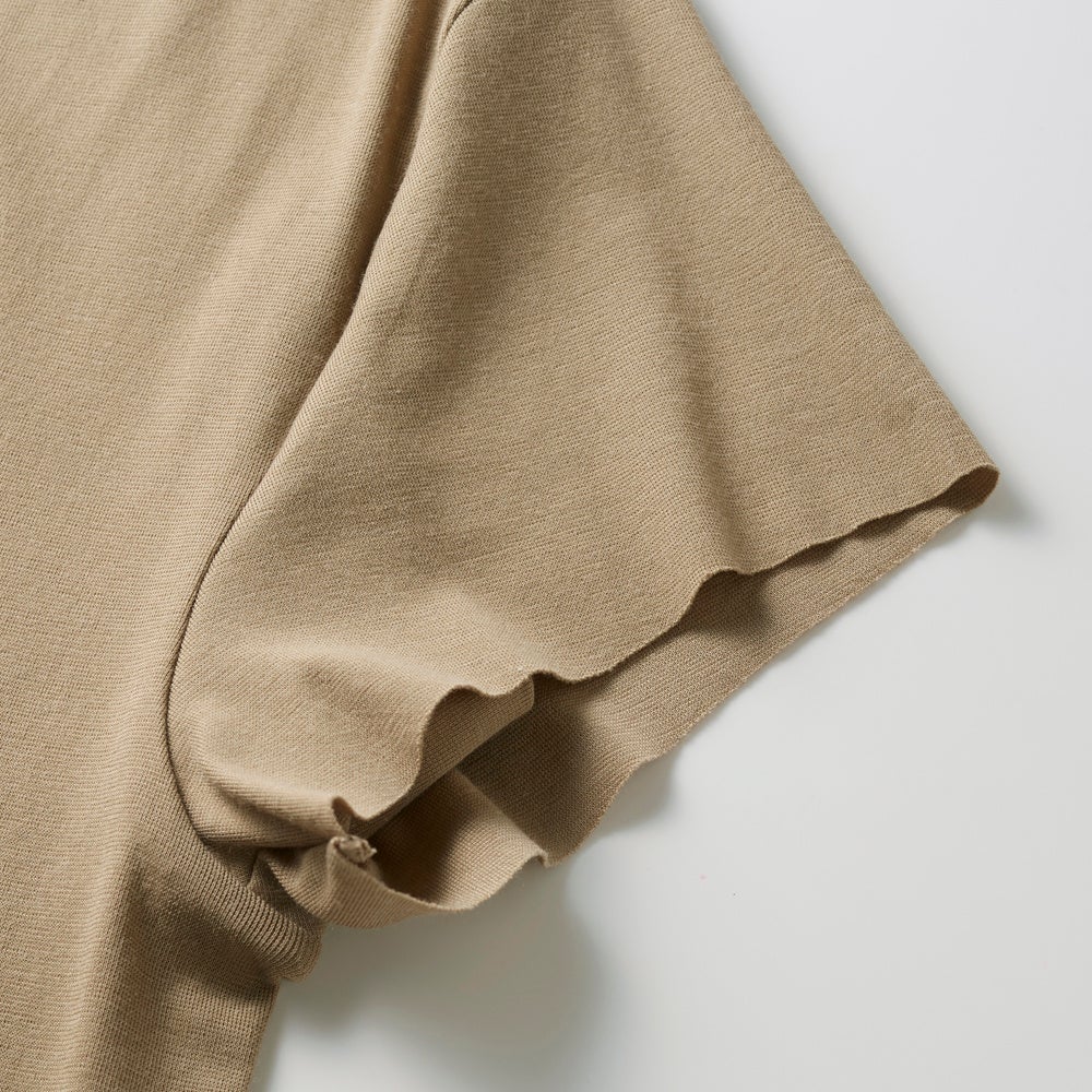 これがTシャツスタイルの新常識。襟・袖・裾に縫い目がない、CUT OFF®仕上げで、Tシャツのシルエットにひびきにくいスタイル。
