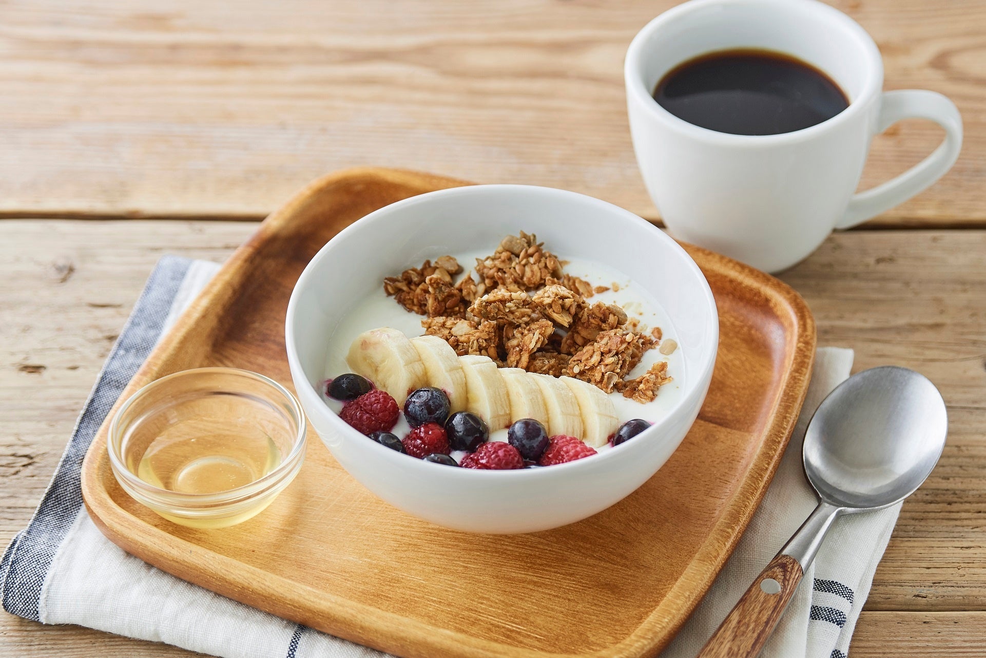 モーニングメニュー(11時まで提供)。デンマークの朝食でよく食べられるグラノーラをセットメニューでどうぞ。アンデルセンオリジナル「パンからうまれたグラノーラ」を使用。