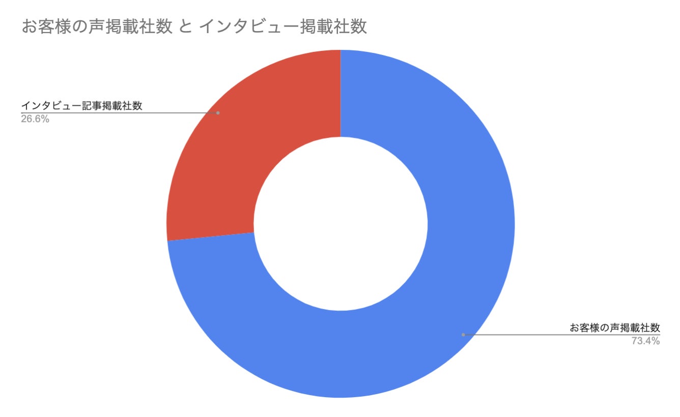 ※調査対象は、インターネット検索にて、「ホームページ制作 お客様の声」「ホームページ制作 お客様インタビュー」「ホームページ制作 お喜びの声」「ホームページ制作 反響」などのキーワードで検索結果3ページ目以内にランクインしている企業となるため、掲載率の高いデータとなっています。上記方法によらず、ランダムに抽出した場合、掲載率は低くなる可能性が高いと考えられます。