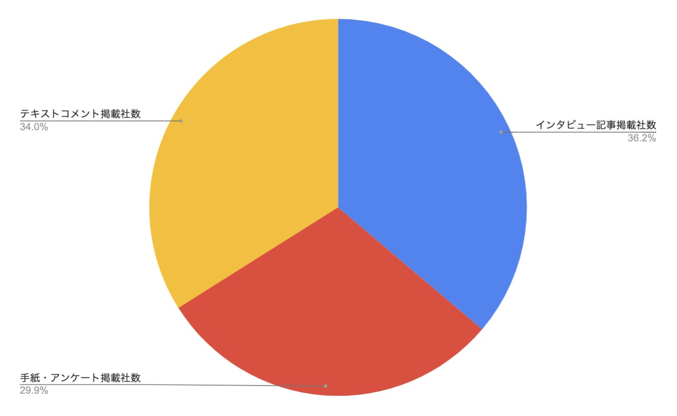 ■コンテンツ種類は「インタビュー」「手紙・メールアンケート」「テキストコンテンツ」が三つ巴