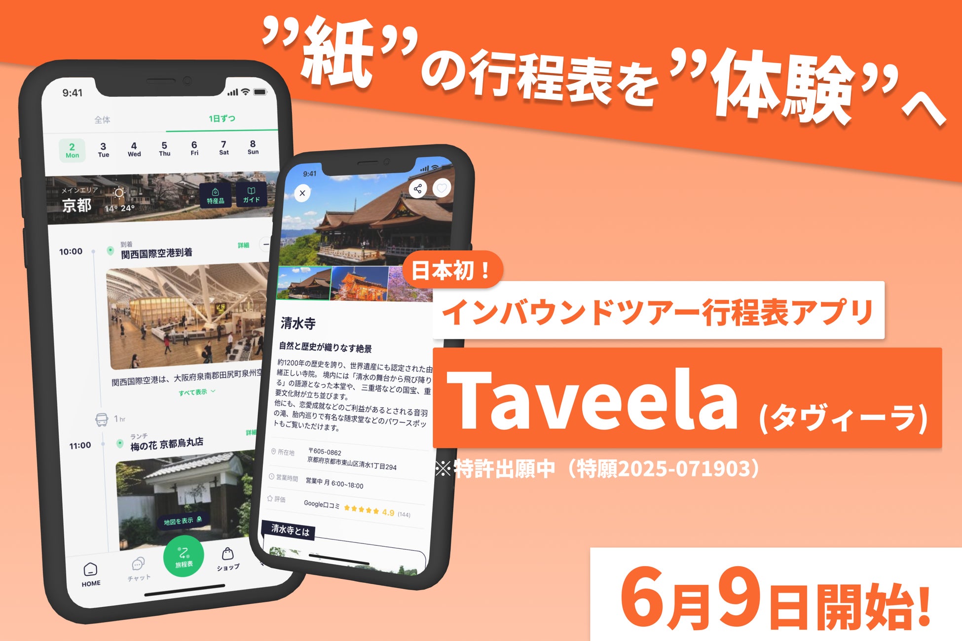 “紙”の行程表を“体験”へ!日本初のインバウンドツアー向けデジタル行程表アプリ「Taveela(タヴィーラ)」6月9日開始