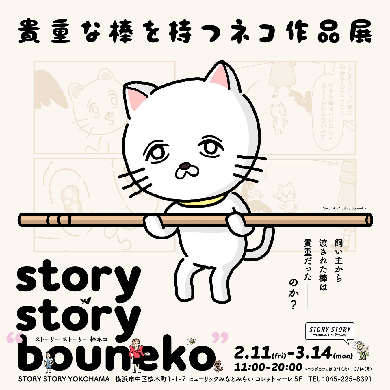 Twitter発の人気漫画「貴重な棒を持つネコ」の作品展が、2/11(金)~3/14(月)にSTORY STORY YOKOHAMAにて開催。