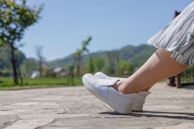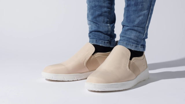 これらの問題を解決するシューズを作りたいという想いから、手が届くサステナブルシューズブランド「Double.S」を立ち上げました。靴底ソールに独自の「天然ゴム発泡素材」を使用しており、不燃ごみとして分別されても、生分解性が高く、温室効果ガスを発生する心配がありません。また、特殊技術により天然ゴムソールの「重い」「グリップ力」「熱に弱い」「汚れやゴミがつきやすい」という課題をすべて解決。一般的なラバーソールに比べ重量は半分程度で、滑りにくく耐久性もあるので、従来の⽯油系素材・ビニル系素材の靴底ソールに慣れている人でも履きやすいのが特徴です。