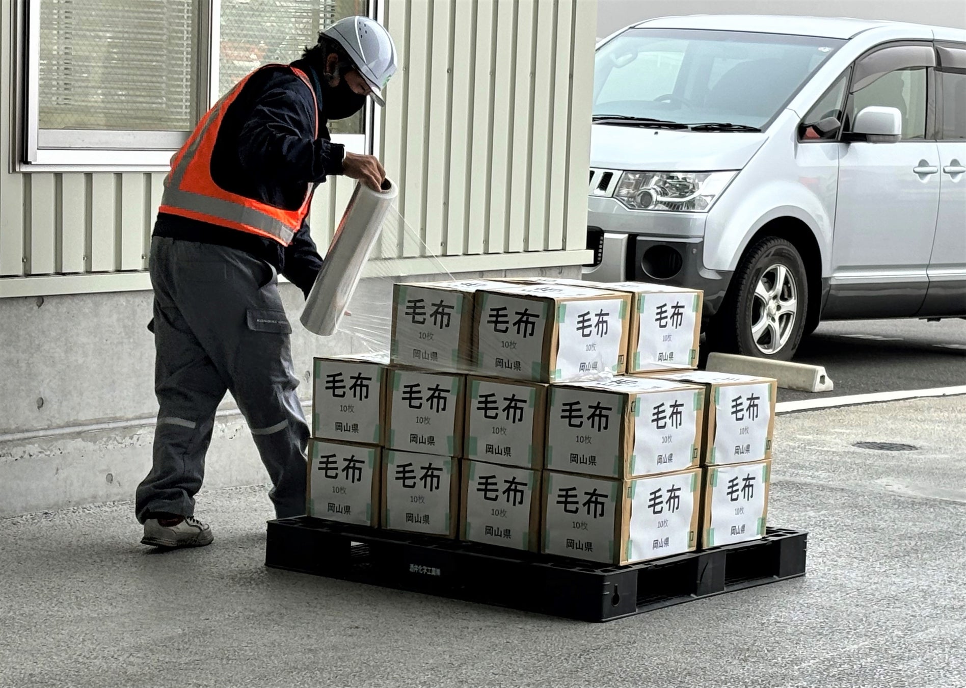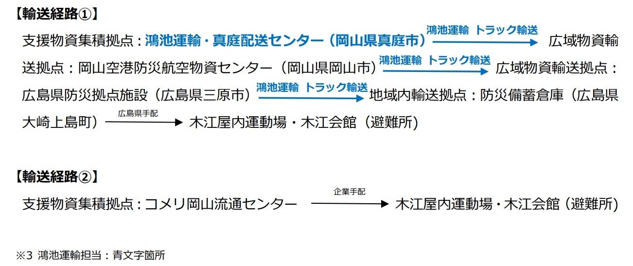 官民一体の支援物資輸送体制の強化に貢献 岡山県の真庭配送センターが支援物資の集積拠点、トラック輸送担当として参加