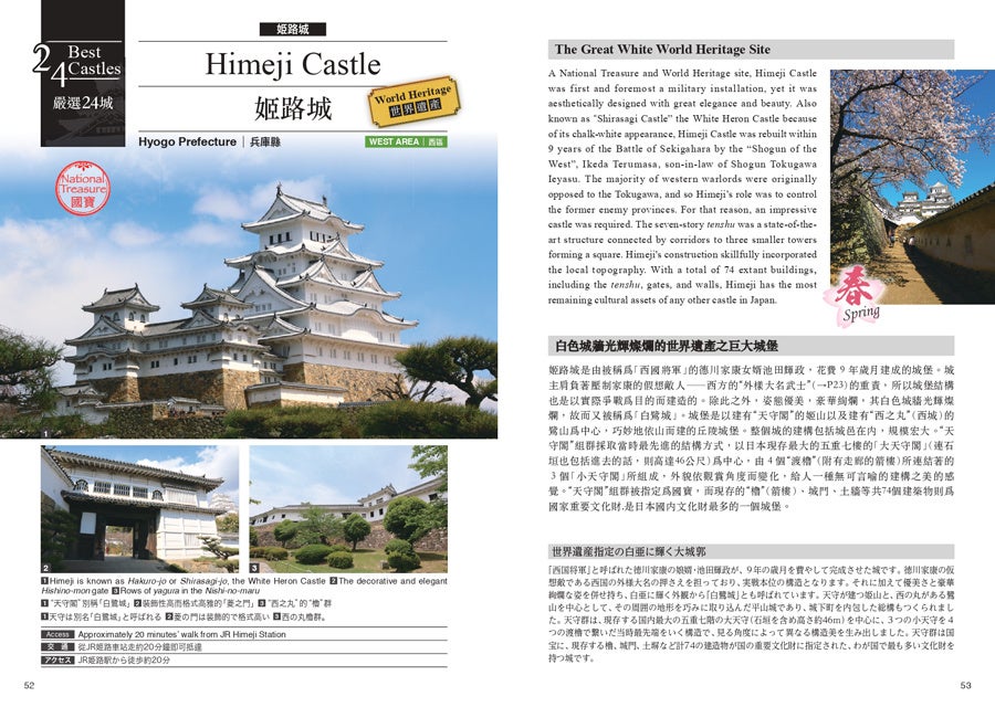 英語・繁體中文・日本語の3ヶ国語に対応しており、日本の城郭の楽しみ方、歴史、ヨーロッパや中国の城郭と日本の城郭の違いなど、訪日外国人向けに基礎知識を解説したページや、24城それぞれの写真や見どころも掲載している。訪日外国人向けではあるが、日本語の説明も掲載されているため、新たな城郭スタンプラリーとして日本人の方にも楽しんでいただけるものとなっている。