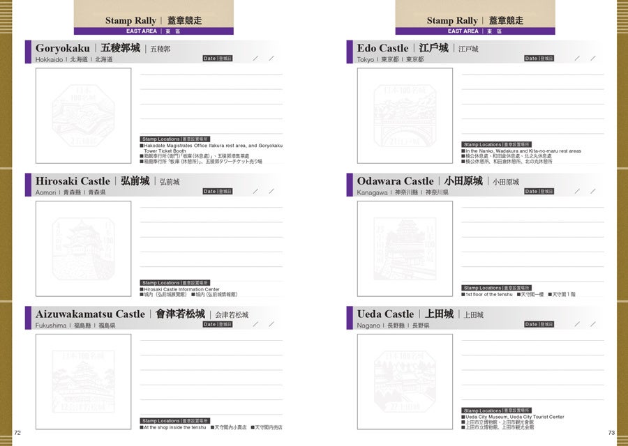 スタンプラリーには、3ヶ国語(英語・繁體中文・日本語)に対応したスタンプ帳付き公式ガイドブックを購入し、各城郭に設置されているスタンプを押印することで参加できる。