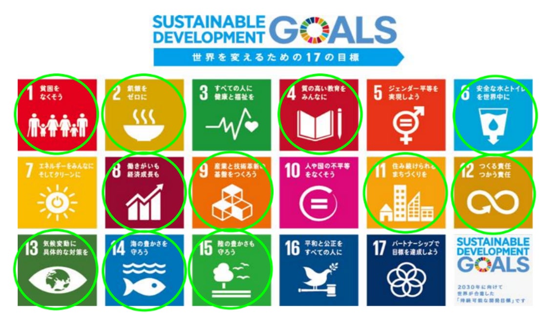 アクアポニックスはSDGsとも親和性が非常に高く、17項目の目標のうち11項目(33指標)に該当します。