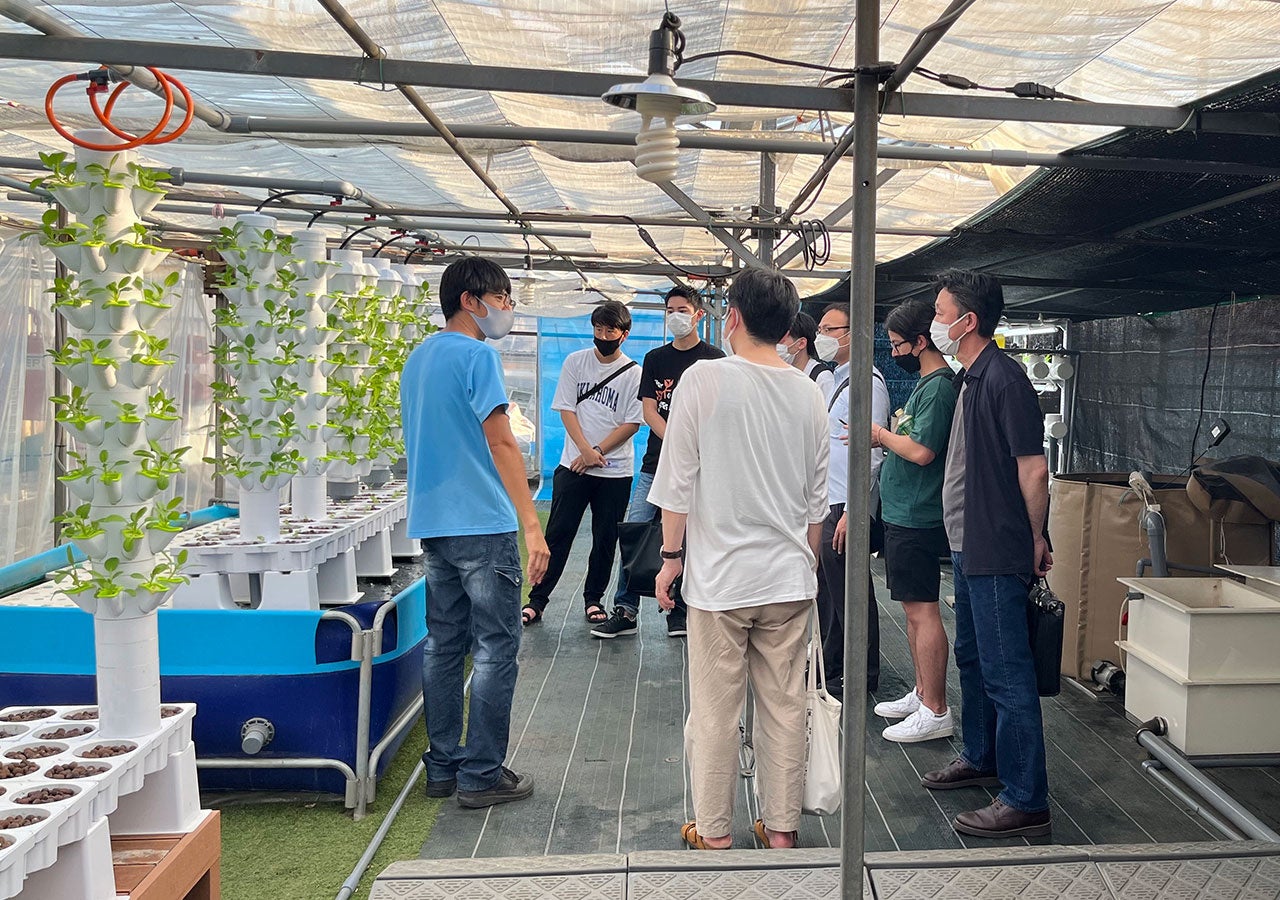 当社が運営する、神奈川県藤沢市の2つのアクアポニックス農場「湘南アクポニ農場」「ふじさわアクポニビレッジ」にて、農場実習を行います。日本で見学・研修を行うアクアポニックス農場はまだ希少であり、全国のアクアポニックス実践者より多くの問い合わせをいただいていることから、新たに実習をプログラムに組み込みました。座学でアクアポニックスの基礎知識を学び、実際に農場実習を行うことで、コース終了後すぐに実践に活かすことができます。