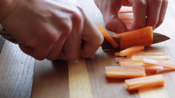 「絶妙カーブ」によって、包丁のような作業性を実現。押し切りや刻みもスムーズに。