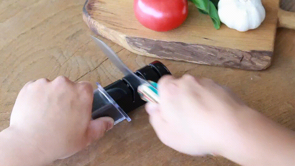 包丁と同じ刃付けをしているので、包丁用のシャープナーを使えば手軽に刃研ぎができます。