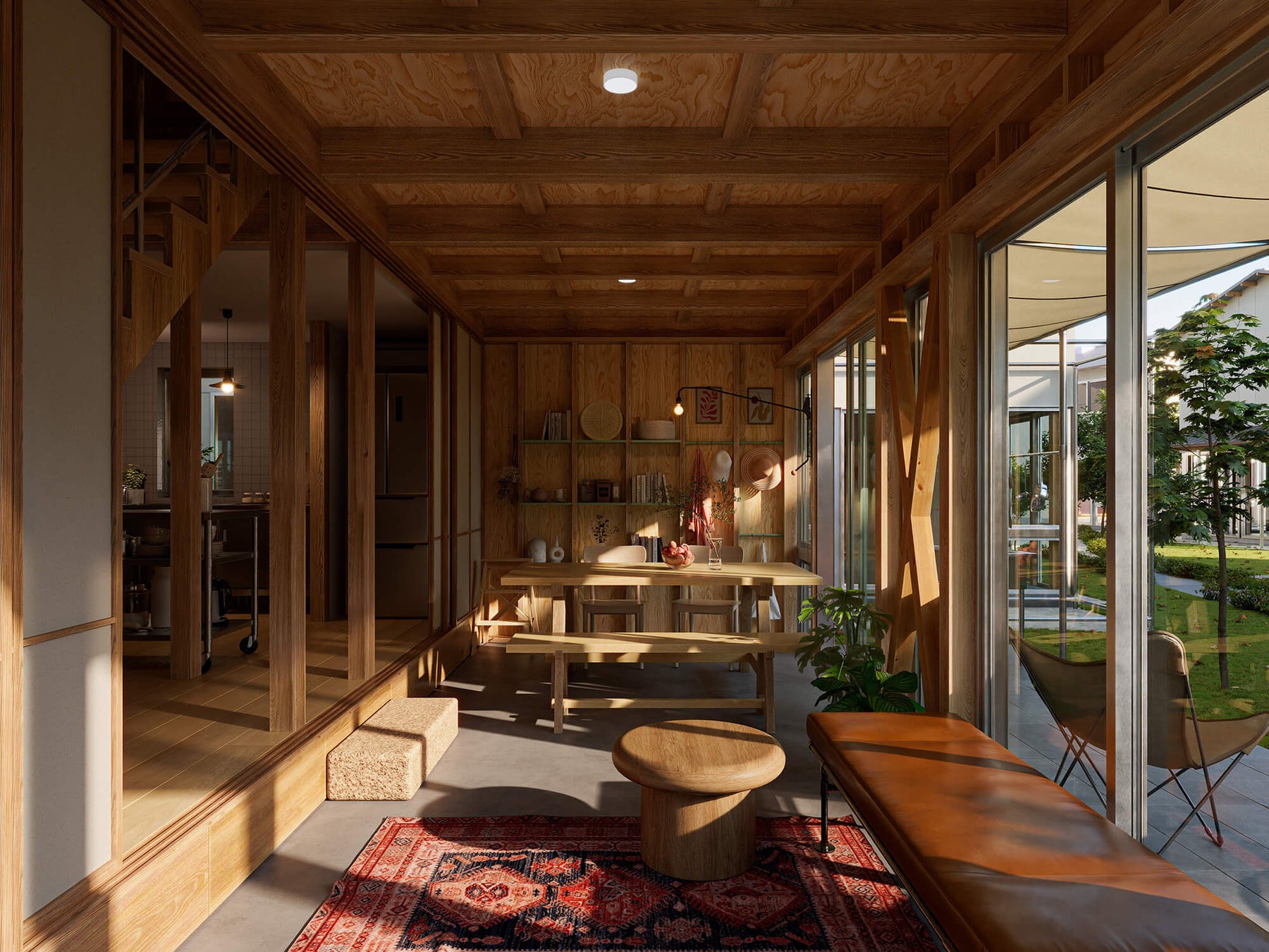 建物の特徴は、庭に面した大きな窓のある土間。緑の豊かな外の環境を室内に取り込み、ゆったりと暮らせます。