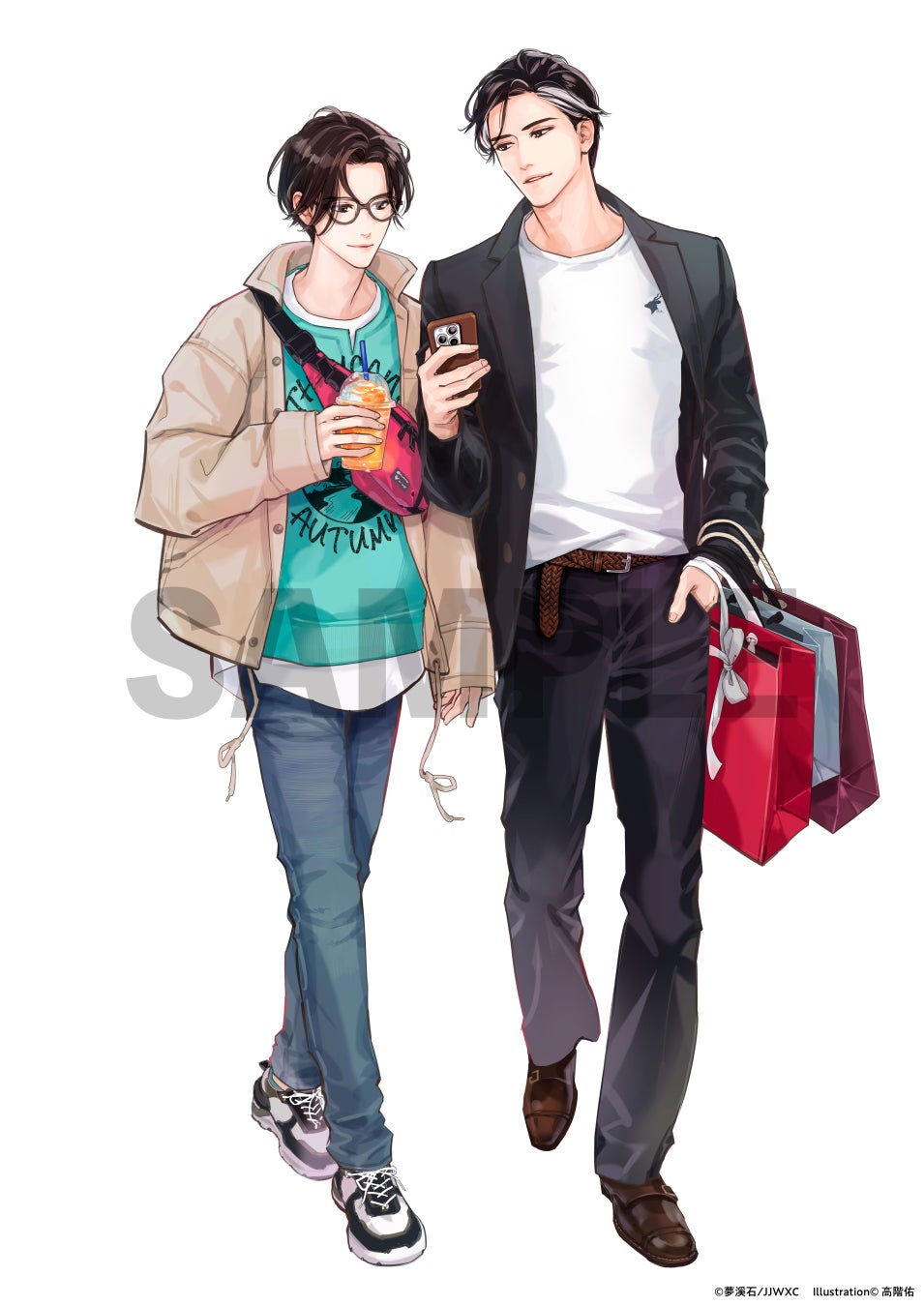 アニメイト限定アクリルキーホルダーにて、晏無師と沈嶠がデート中に着用している服とおそろいのデザインです。日本語版『千秋』だけでなく、四六判並製でつくられた書籍に広くお使いいただけます。帆布ならではの経年変化をぜひお楽しみください。