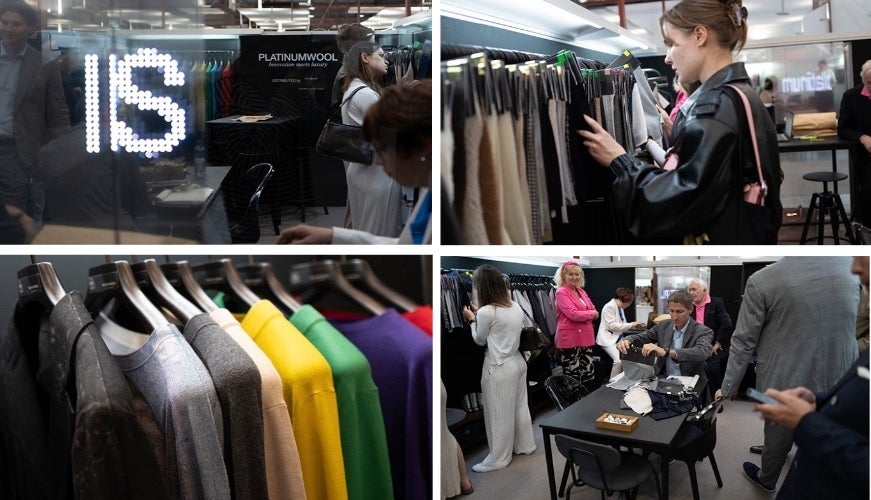 レセプションでは、ミラノウニカのブースでは展示できなかったスライバーや生地を展示し、多くのお客様にプラチナウール™を実際に手に取って体感していただきました。沢山のお客様とともに当社の最新製品PLATINUMWOOLの発表を祝うことができたことに感謝いたします。