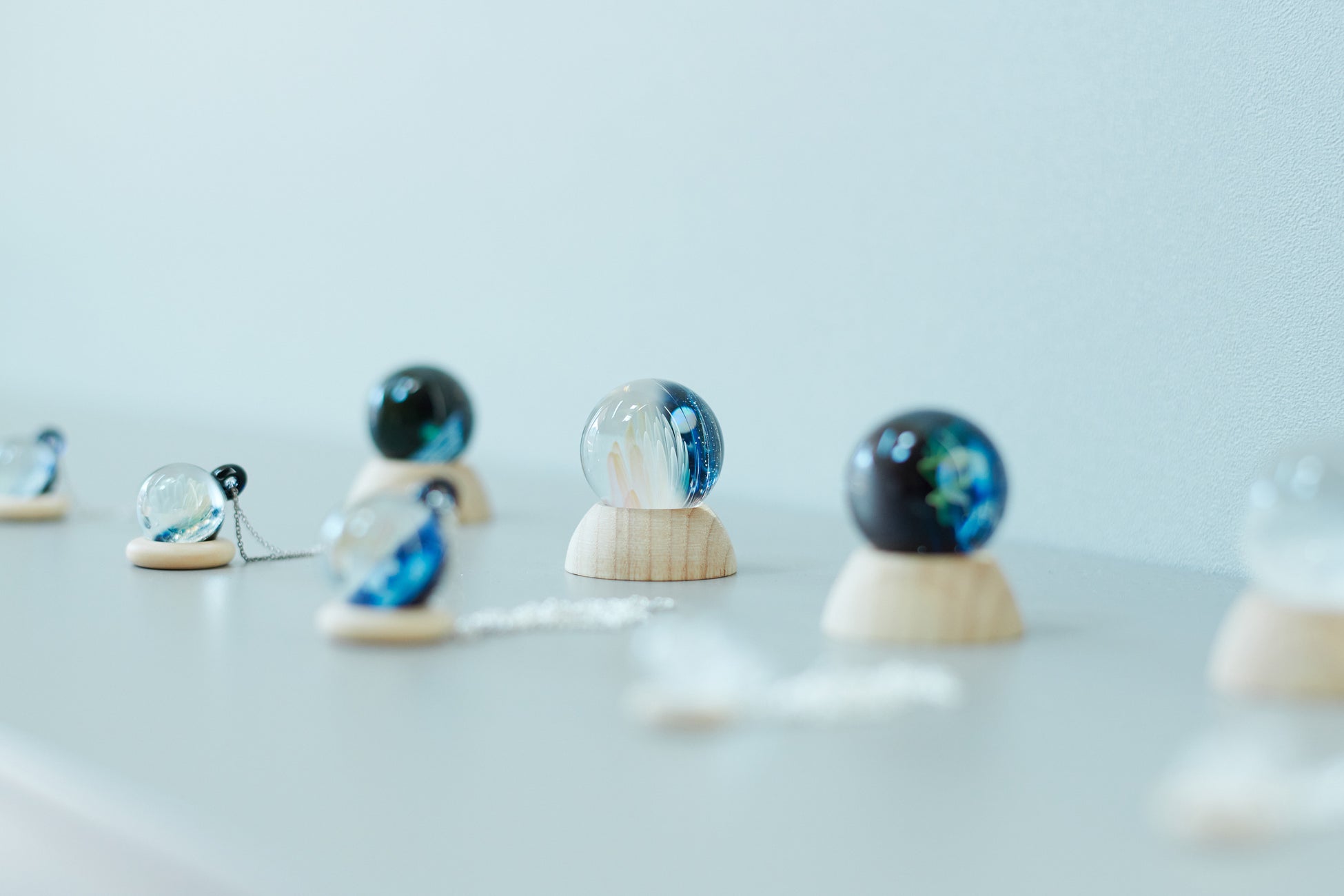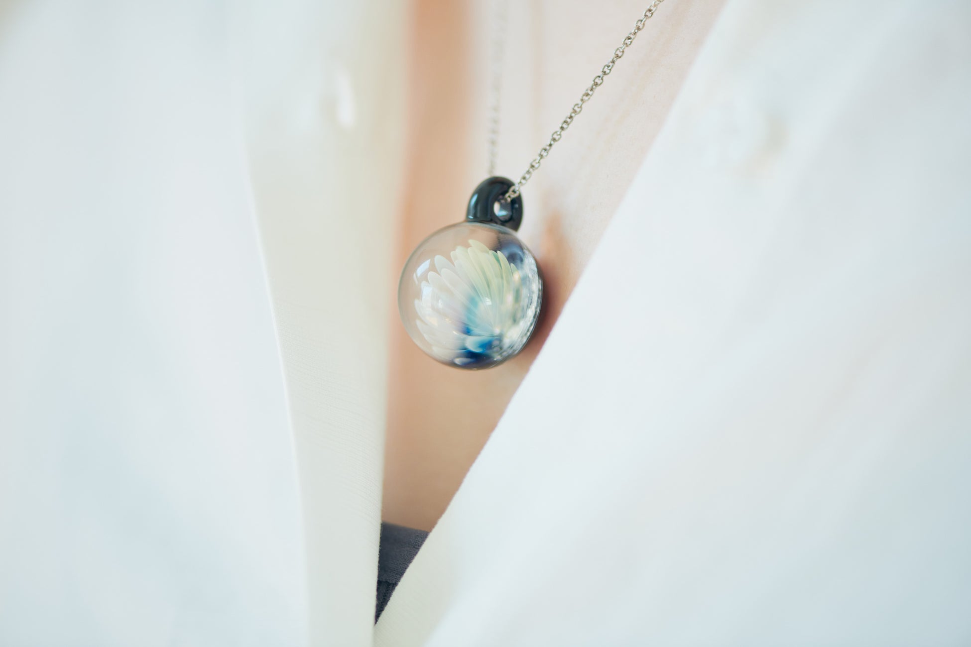 ネックレスは常に身につけていられるからこそ、どこにいても、いつも、大切なご家族を感じられるアイテムです。ガラス職人の手で丁寧に作り上げられるガラスはシンプルなデザインから個性的な模様のデザインまで幅広く取り揃えています。また、これから災害が多く予測されている日本では、すぐ持ち運ぶことのできるネックレスは、安心な、あたらしい手元供養のかたちです。