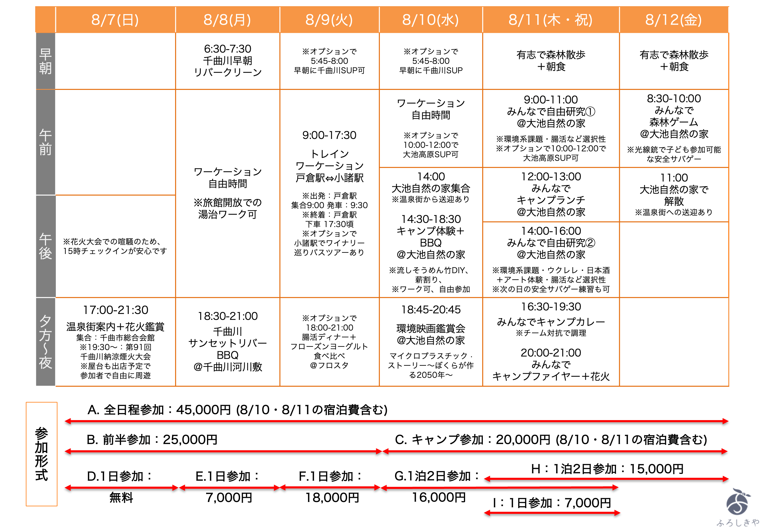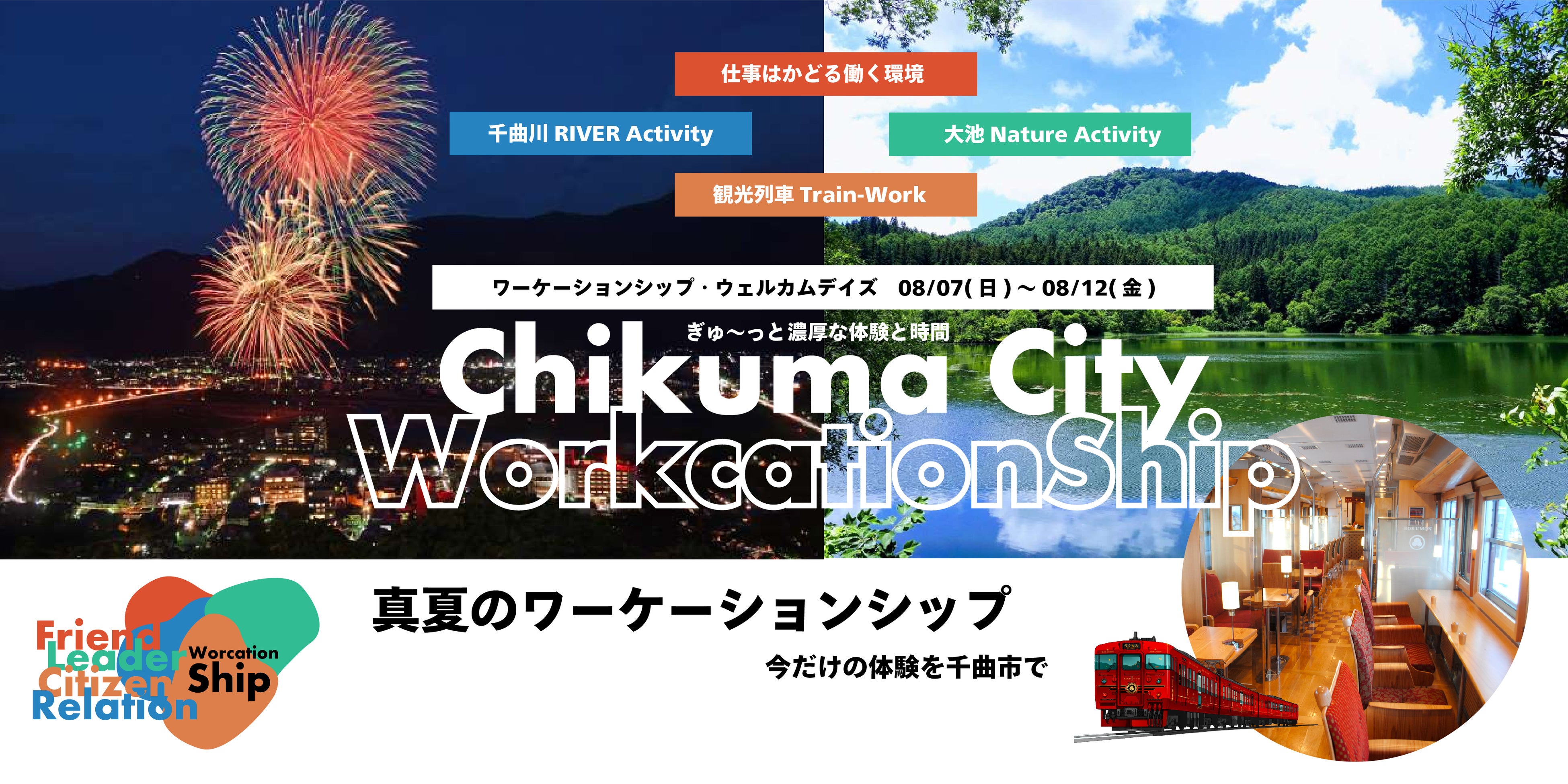 株式会社ふろしきや(所在地:長野県千曲市、代表:田村英彦/以下:当社)は信州千曲観光局、長野県、しなの鉄道と提携し、8月7 日(日)〜8月12日(金)に「真夏のワーケーションシップ」を開催します。