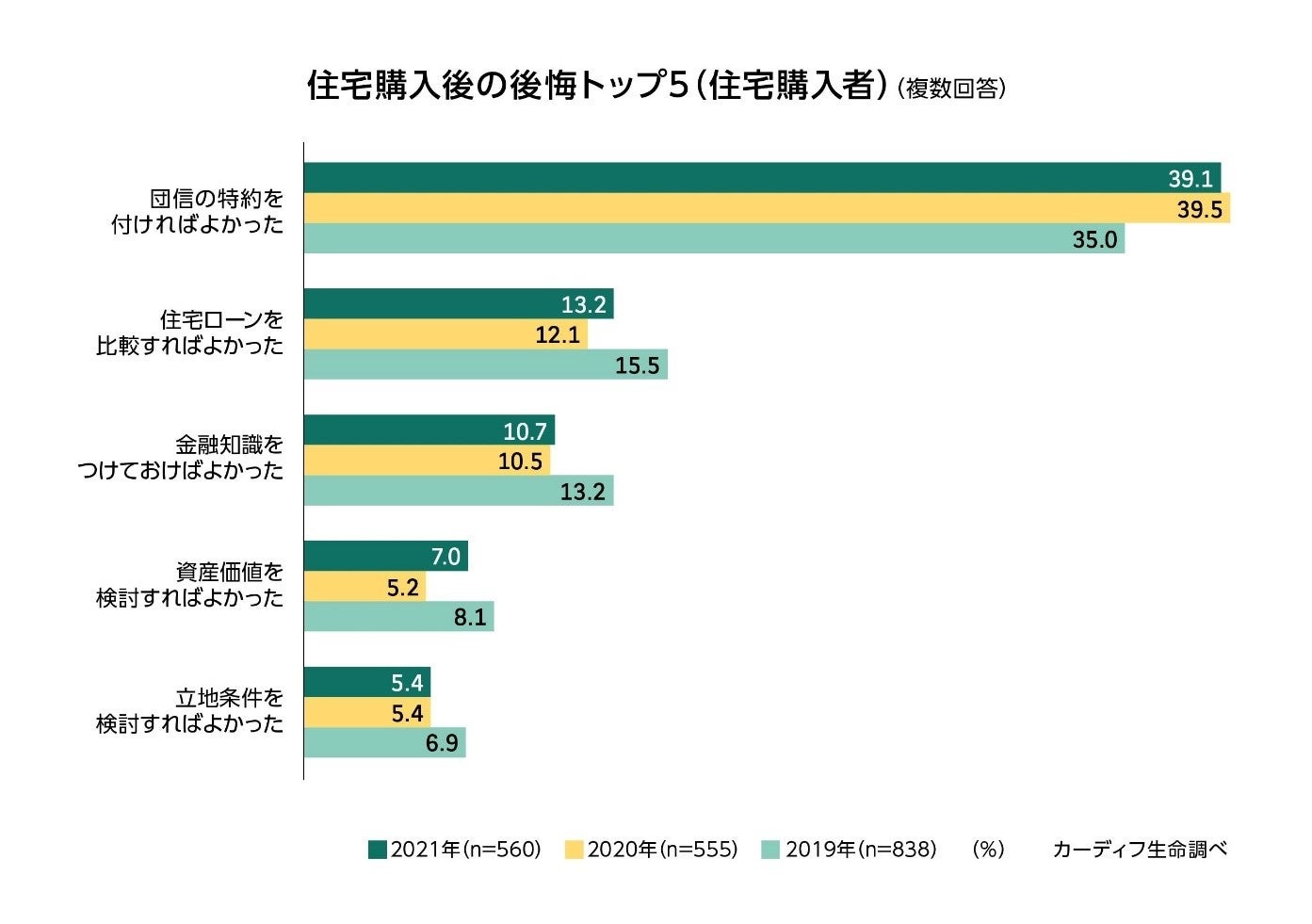 - 住宅購入後の最大の後悔は、3年連続「団信の特約※4を付けておけばよかった」