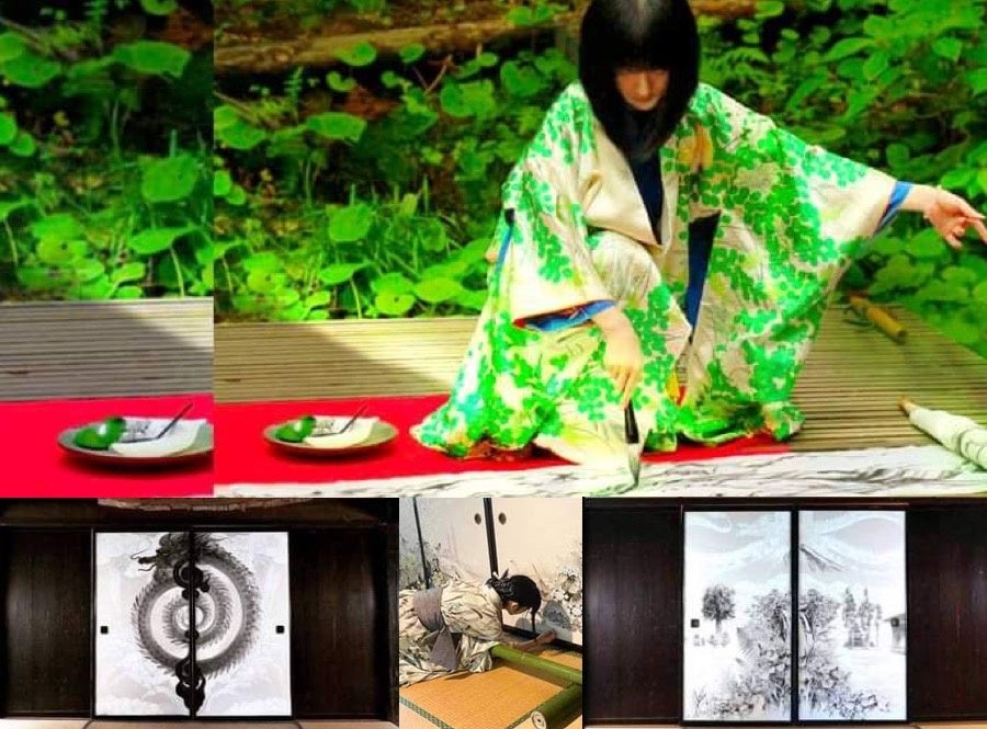 &墨絵を描くイベント「 秋の宴_能楽と⾷と⽔墨を楽しむ 」(森と⼈を和⽂化で繋ぐツナグの森project・養⽼