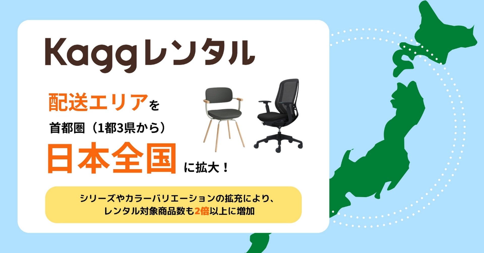 新品オフィス家具のサブスクリプションサービス「Kaggレンタル」、配送エリアを1都3県から日本全国に拡大。シリーズやカラーバリエーション拡充で、対象商品数も2倍以上に増加