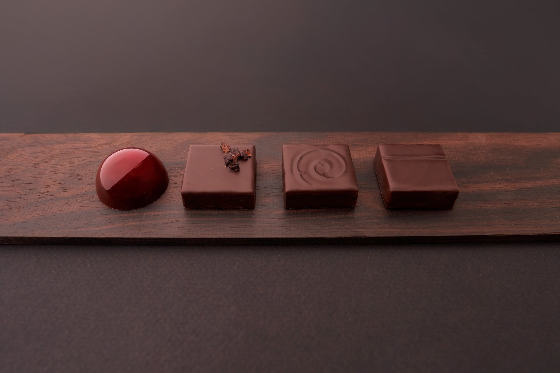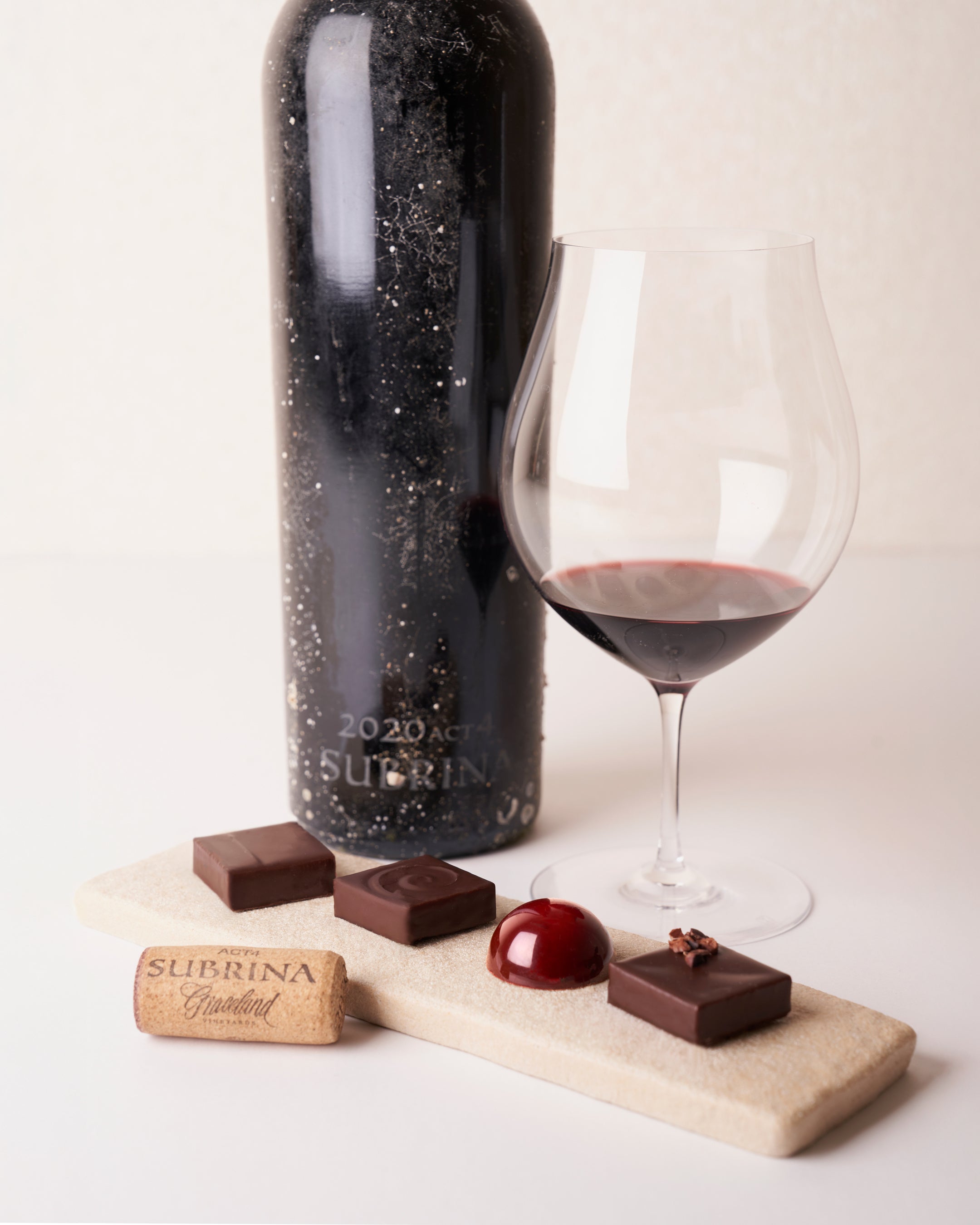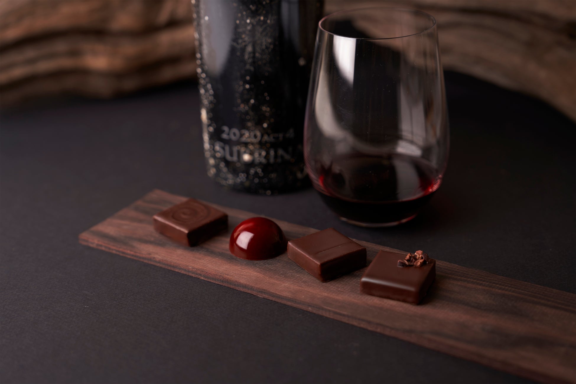 4種のボンボンショコラは、それぞれ異なる香りと味わいを持ち、SUBRINAワインと一緒に楽しむことで、口の中で溶け合いながら幾重にも重なる複雑な風味を生み出します。まるでコース料理を楽しむように、味わいの変化や融合、そして深い余韻をじっくりと堪能できる贅沢な時間をお届けします。