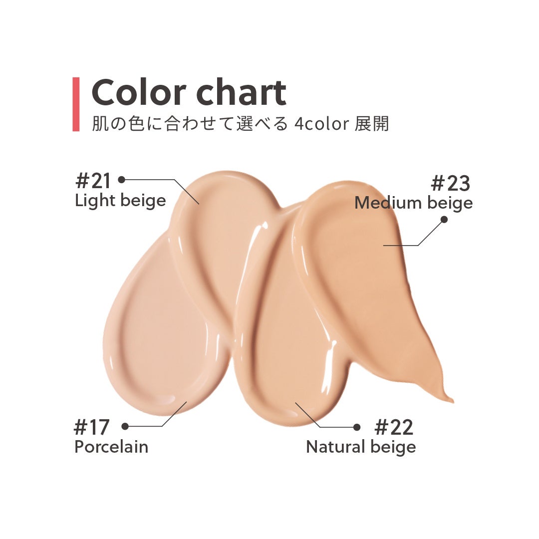 肌本来の色·キメ·光に集中し、肌に染み込むように薄く密着し、最も自分らしく輝く肌に仕上げる。