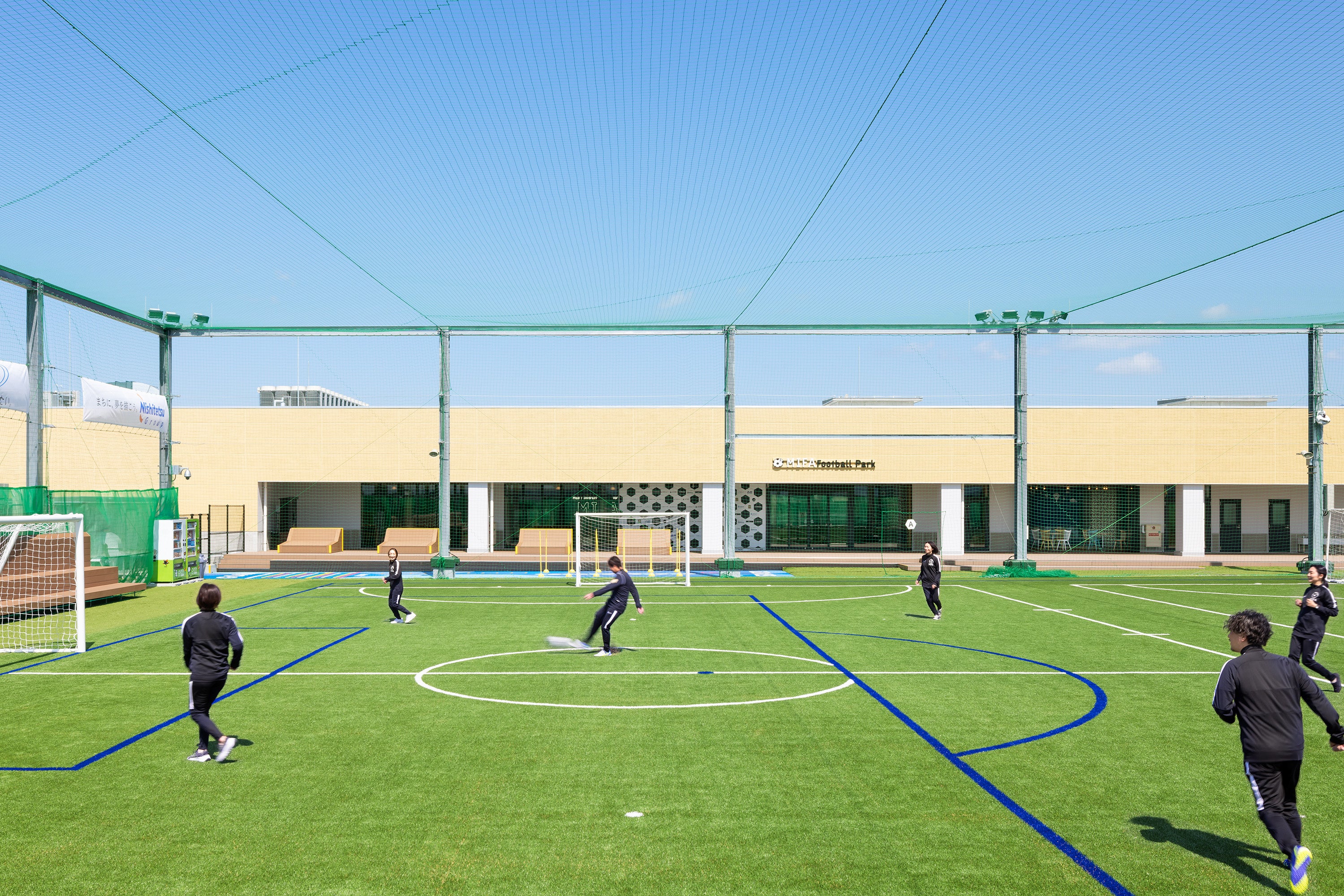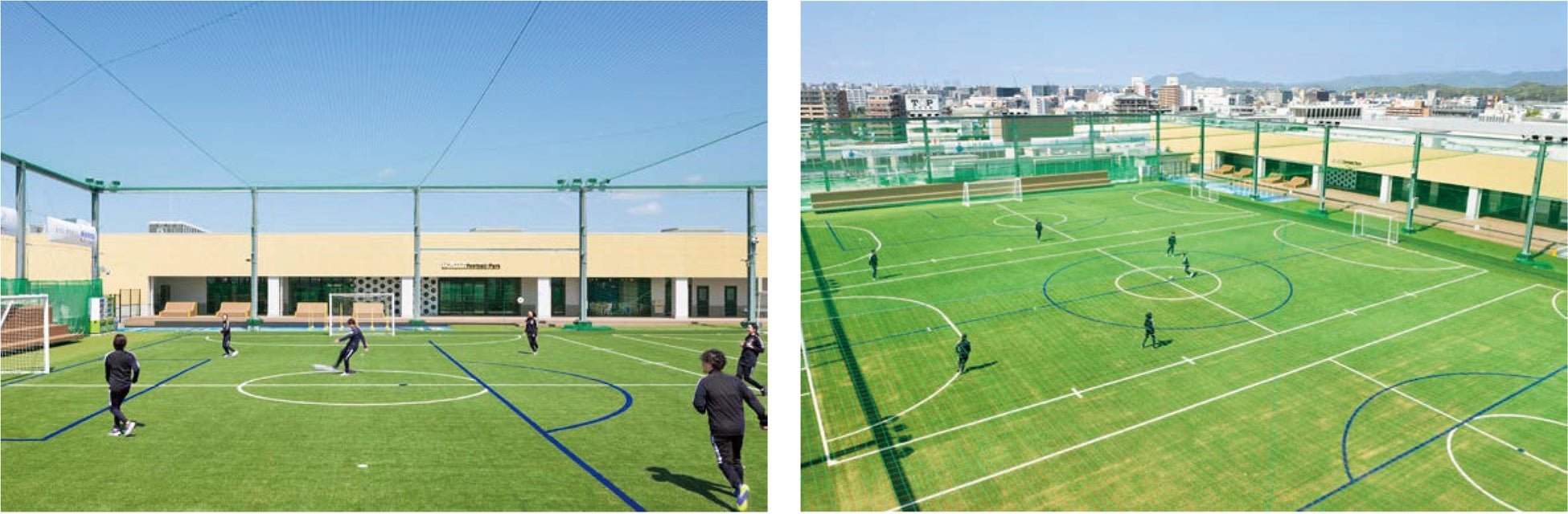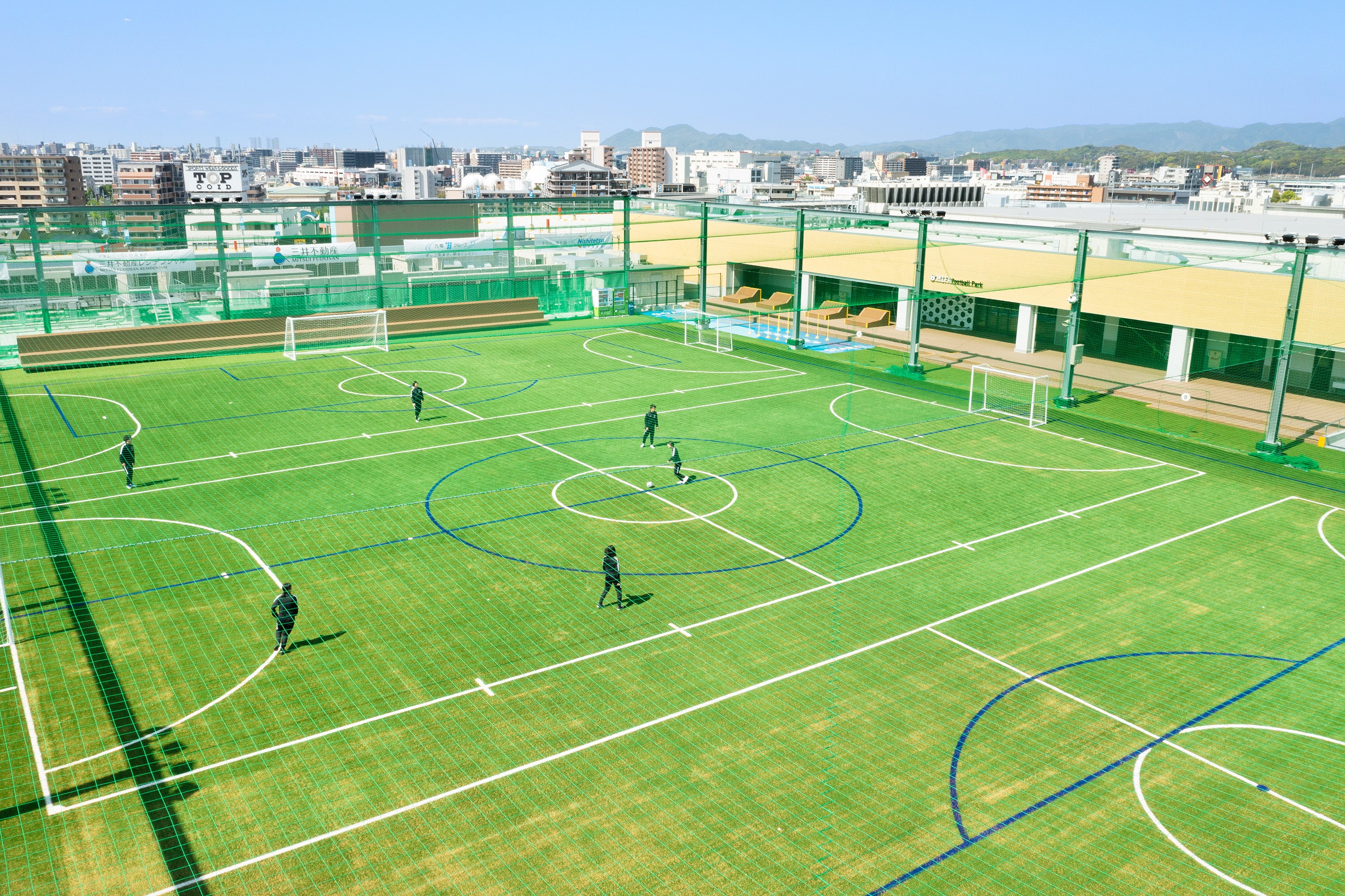 株式会社コスモスモア(本社:東京都渋谷区、代表取締役社長:枝廣 寿雄、以下「コスモスモア」)は、4月25日にオープンした「MIFA Football Park福岡」の基本設計とクラブハウス部分の設計・施工を担当いたしました。「MIFA Football Park福岡」は、三井不動産株式会社、九州電力株式会社、西日本鉄道株式会社が事業を推進する「三井ショッピングパーク ららぽーと福岡」の屋上に出店しており、施設としては東京(新豊洲、立川)、仙台に続き今回の福岡で4施設目となります。