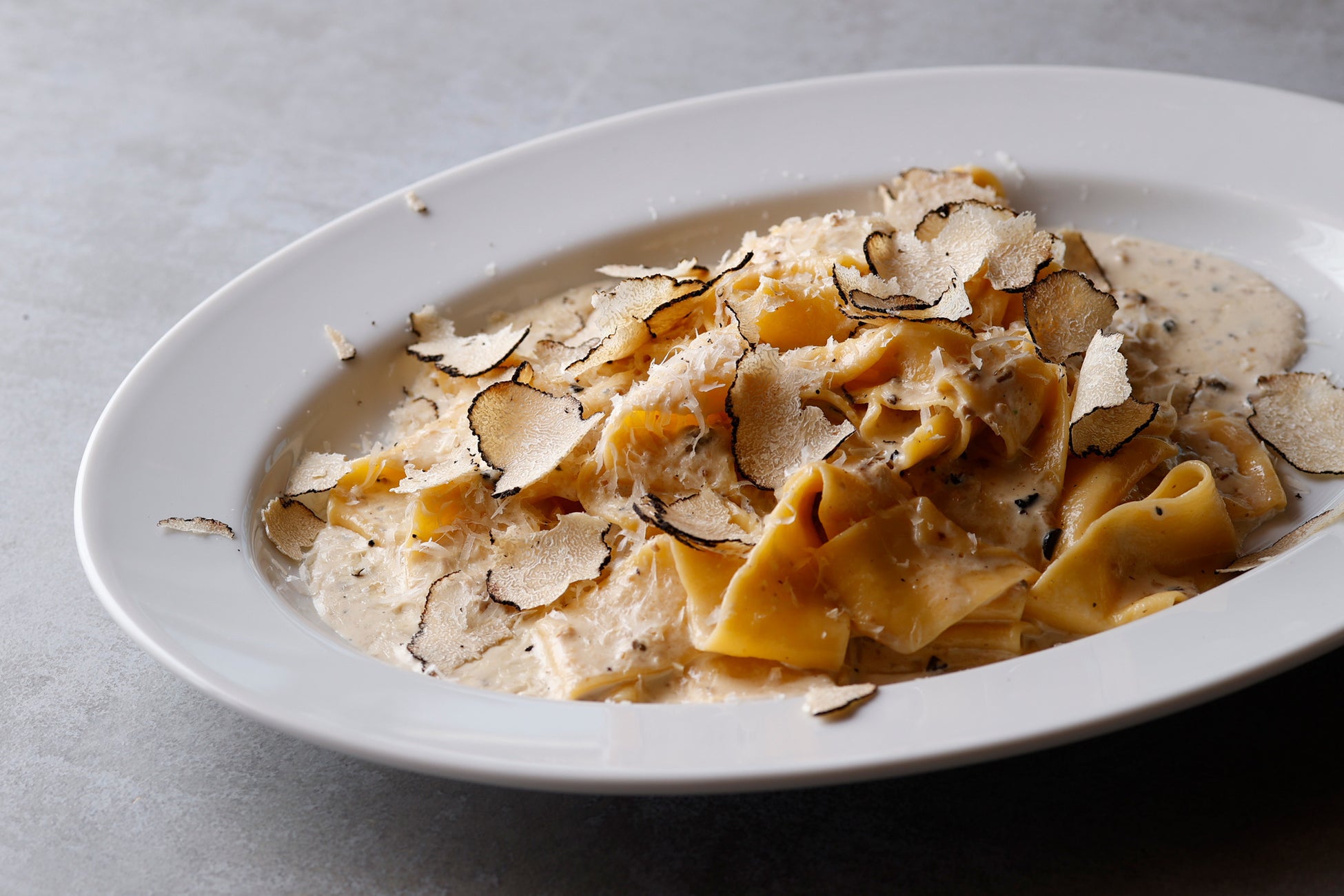 毎日店内で仕込む、出来立ての手打ちパスタを楽しめる一品です。薄く伸ばした幅の広い麺が特徴です。ポルチーニ茸とトリュフを使用したリッチなソースと絡めてお召し上がりいただきます。