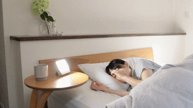 起床時は朝日のような白い光の眩しさが、心地よい目覚めを促します。