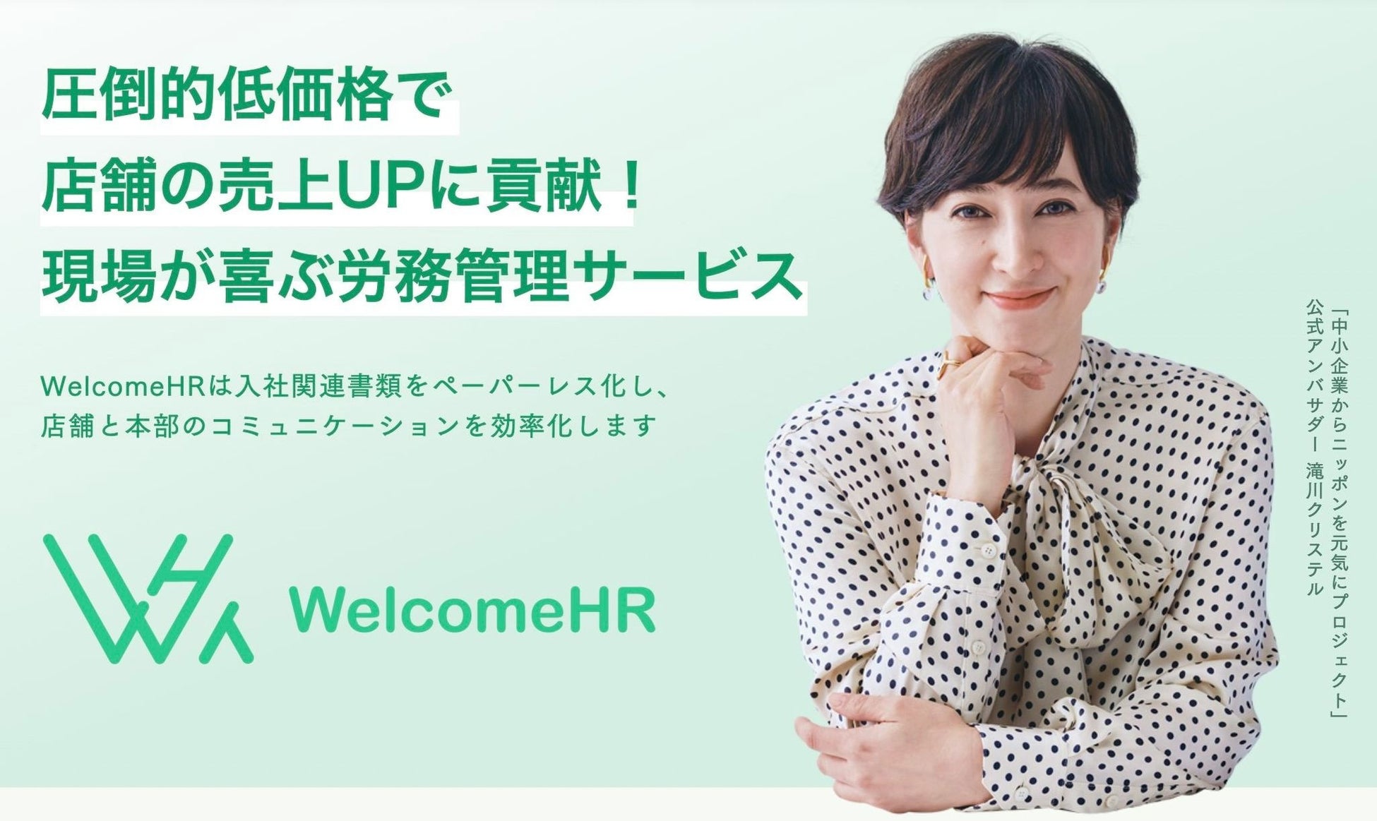アルバイトに特化した労務管理/WelcomeHRは、滝川クリステルさんが公式アンバサダーを務める「中小企業からニッポンを元気にプロジェクト」に参画