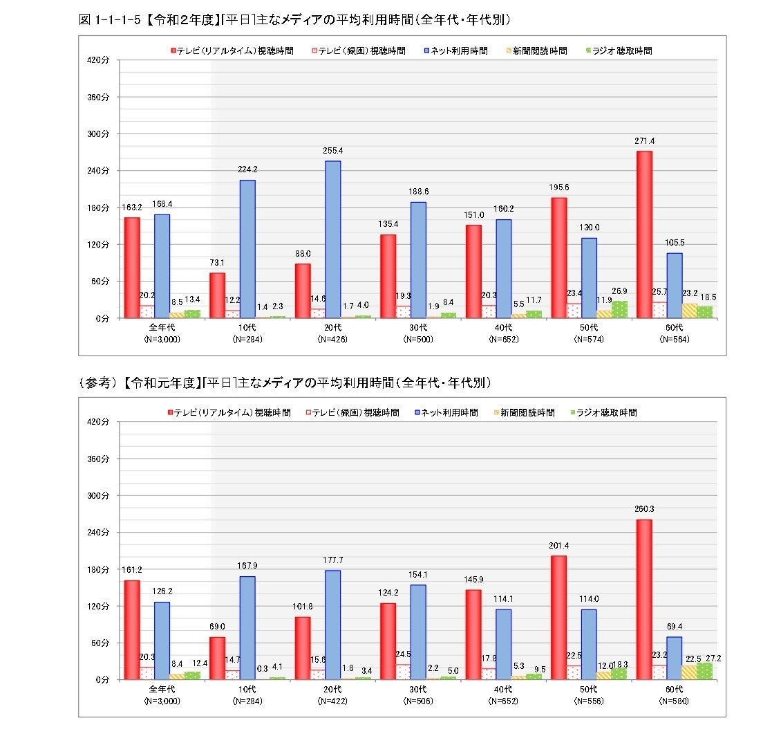 (※出典:「総務省 令和2年度情報通信メディアの利用時間と情報行動に関する調査 報告書」https://www.soumu.go.jp/main_content/000765258.pdf )