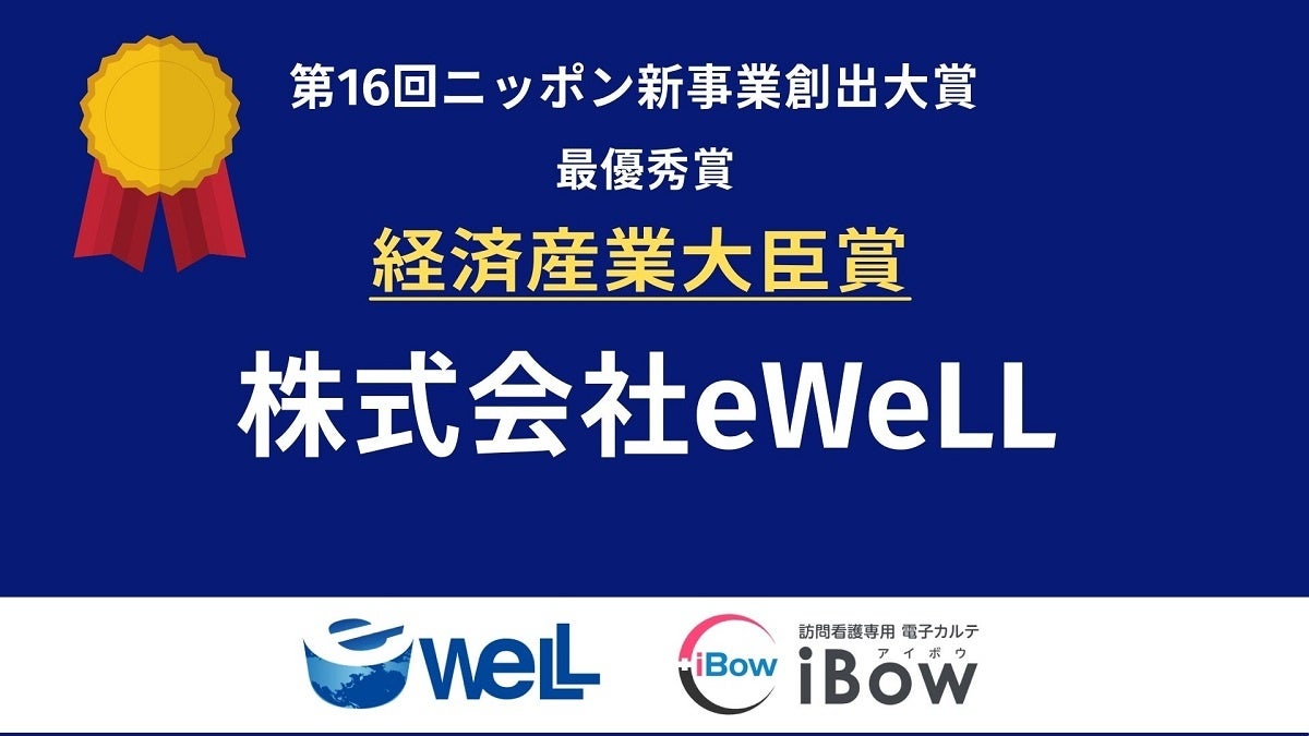 株式会社eWeLL(代表取締役社長:中野 剛人 所在地:大阪市中央区)は、2021年12月14日、公益社団法人 日本ニュービジネス協議会連合会(略称JNB)の主催する第16回ニッポン新事業創出大賞にて、『経済産業大臣賞』を受賞致しました。