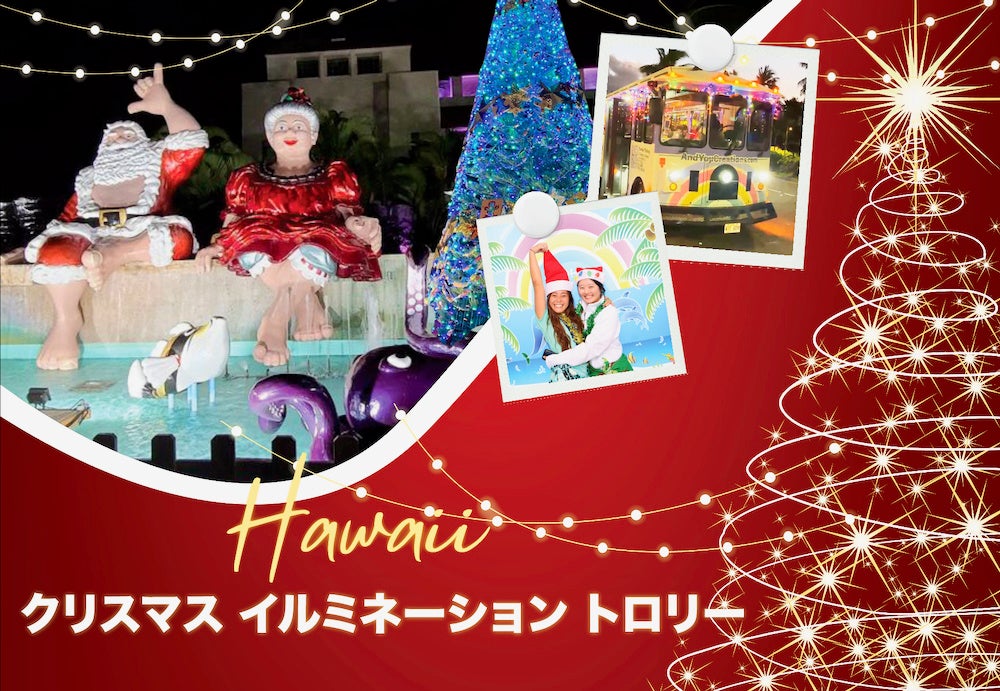 ハワイ初の「野生のイルカツアー」を1989年より運営するアンドユークリエーションズ [ドルフィン&ユー](本社:米国ハワイ州ホノルル市、代表取締役:リチャード・ホーランド)は、2024年12月14日(土)より2週間の間、毎年恒例のホノルルシティーホールにデコレーションされるイルミネーションを見に行く「クリスマス・イルミネーション・トロリー」の運行を開始致します。