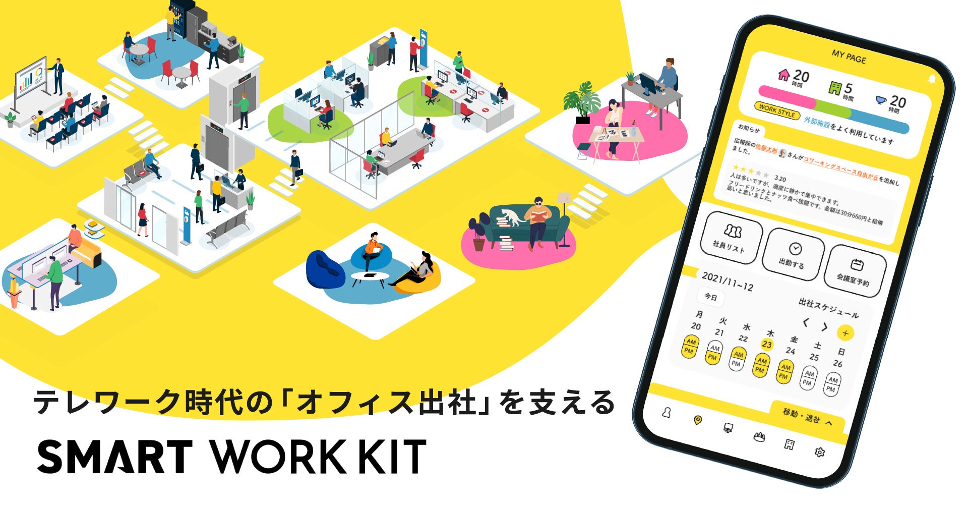 SMART WORK KITはテレワーク時代のオフィス出社を支えるサービスです。開発の背景には、今回の調査から見えてきた「たまにはオフィスに出社したいが無駄な出社はしたくない」というハイブリッドワークの隠れたニーズがあります。そういったニーズに答えるためにもリニューアルを通して座席の利用状況・出社予定の登録・会議室のオンライン予約などの機能開発にこだわりました。SMART WORK KITを通してオフィスの今を可視化することで在宅ワークには出来ない社員同士の対面コミュニケーションやオフィス出社をすることでより生産性の高い働き方を安心して実現します。リリースから1年が経ち、今月リニューアルを実施しました。