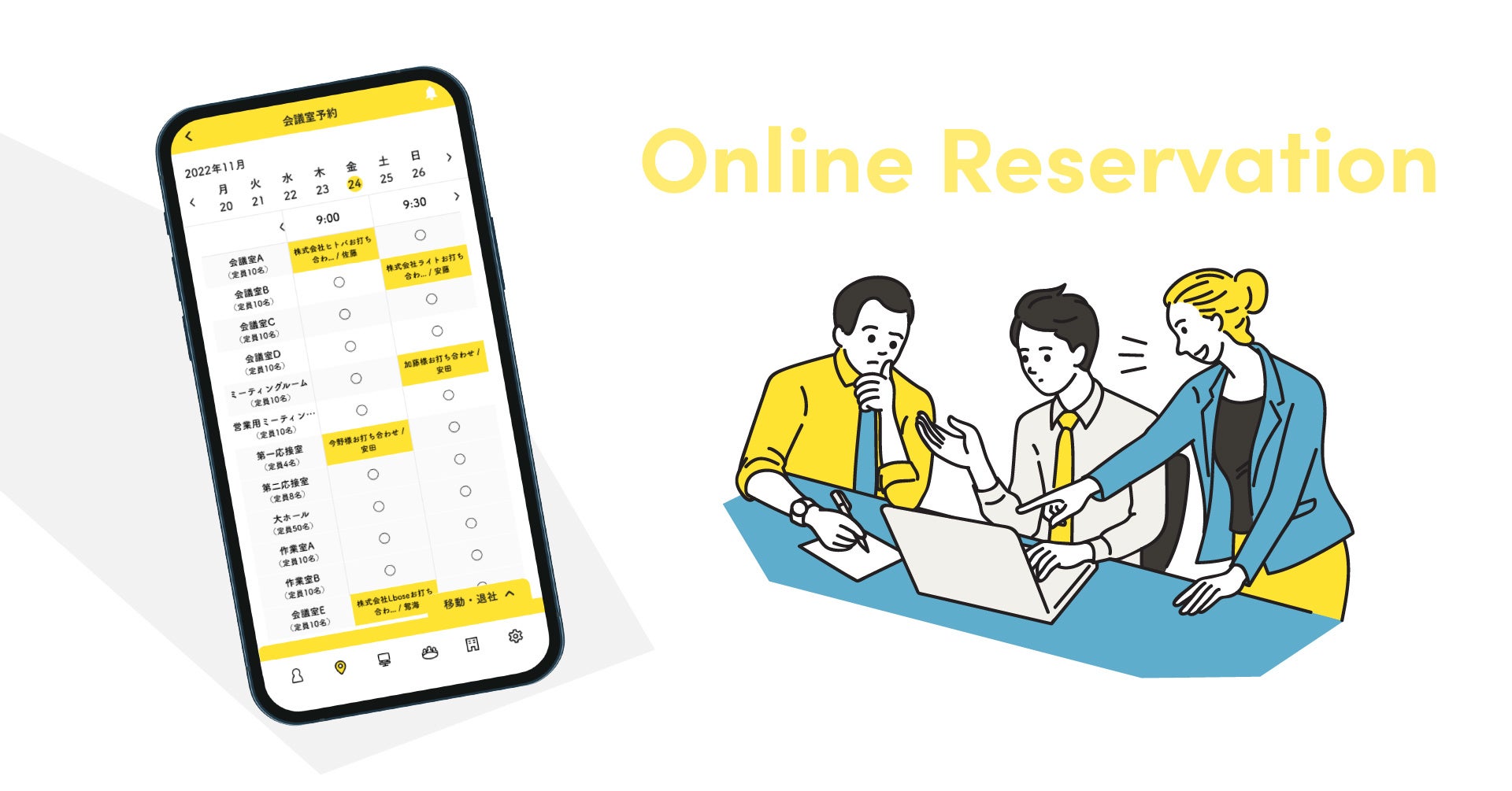 会議室予約から集中ブースなどの空き状況が確認でき予約もできます